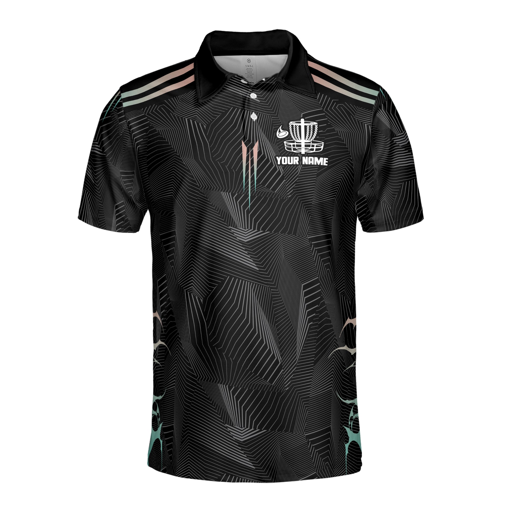 Custom Name Team Disc Golf Grunge Black Yellow Pattern Men's Polo Shirt S-5XL