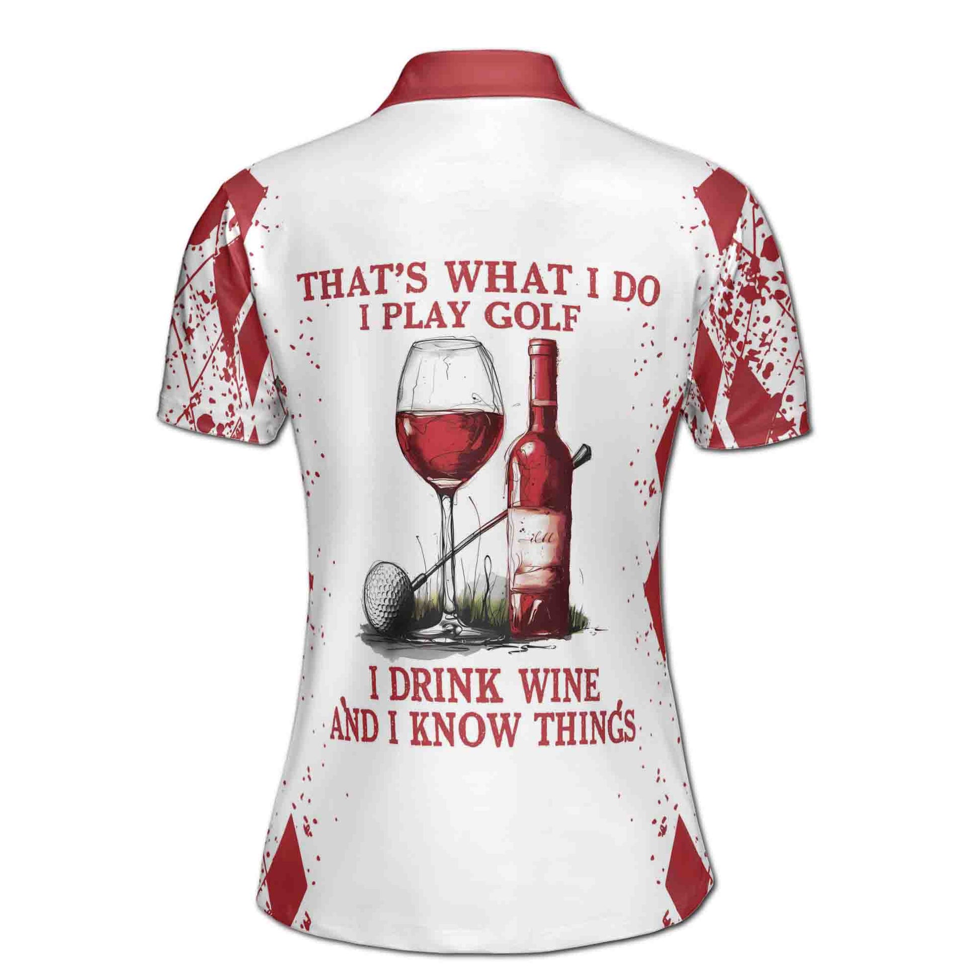 Custom Name That's What I Do I Play Golf I Drink Wine Women's Polo Shirt S-5XL