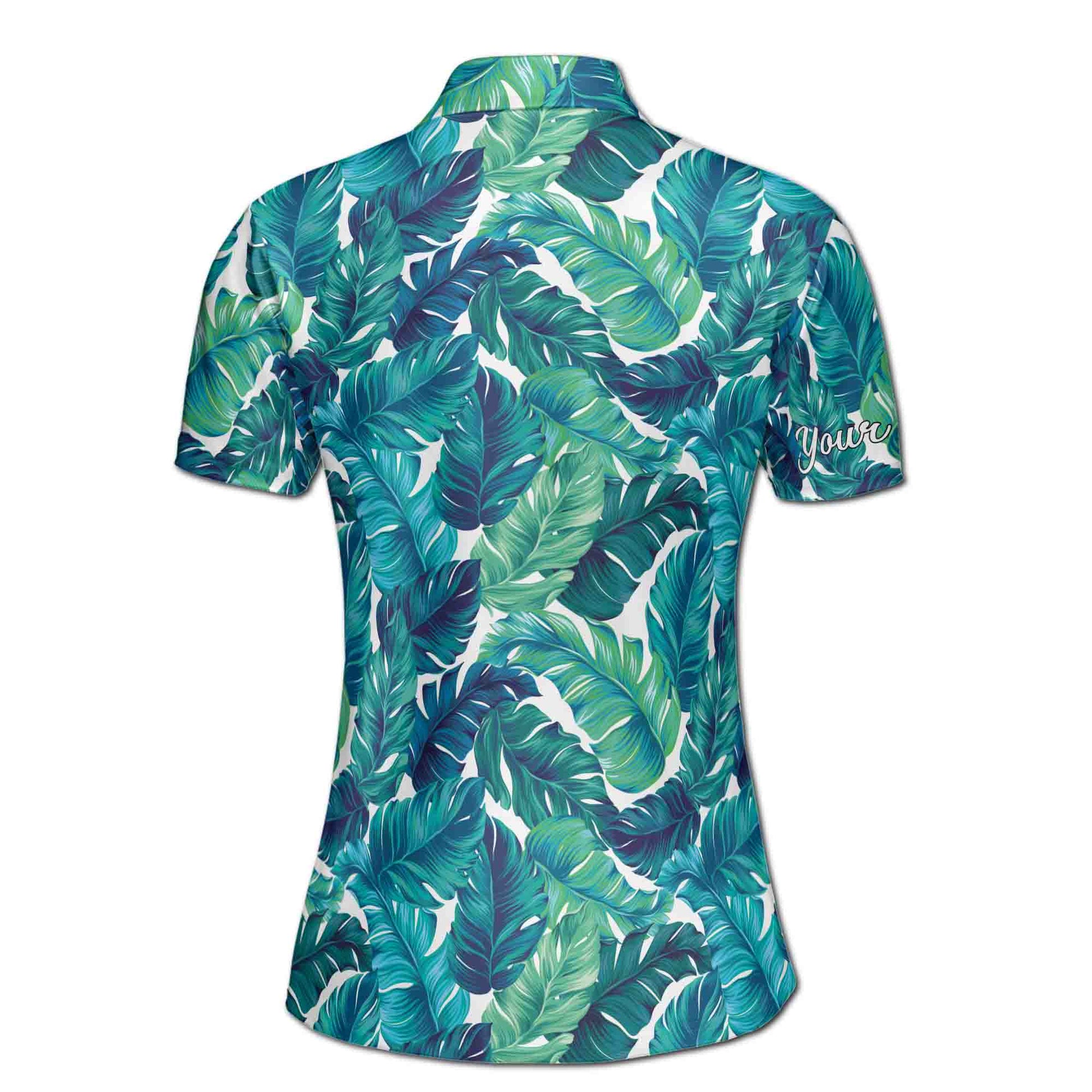 Custom Name Tropical Palm Tree Leaf Summer Color Golf Women's Polo Shirt S-5XL