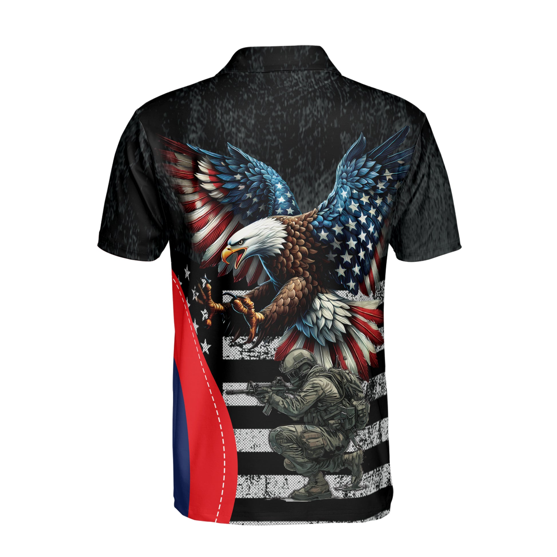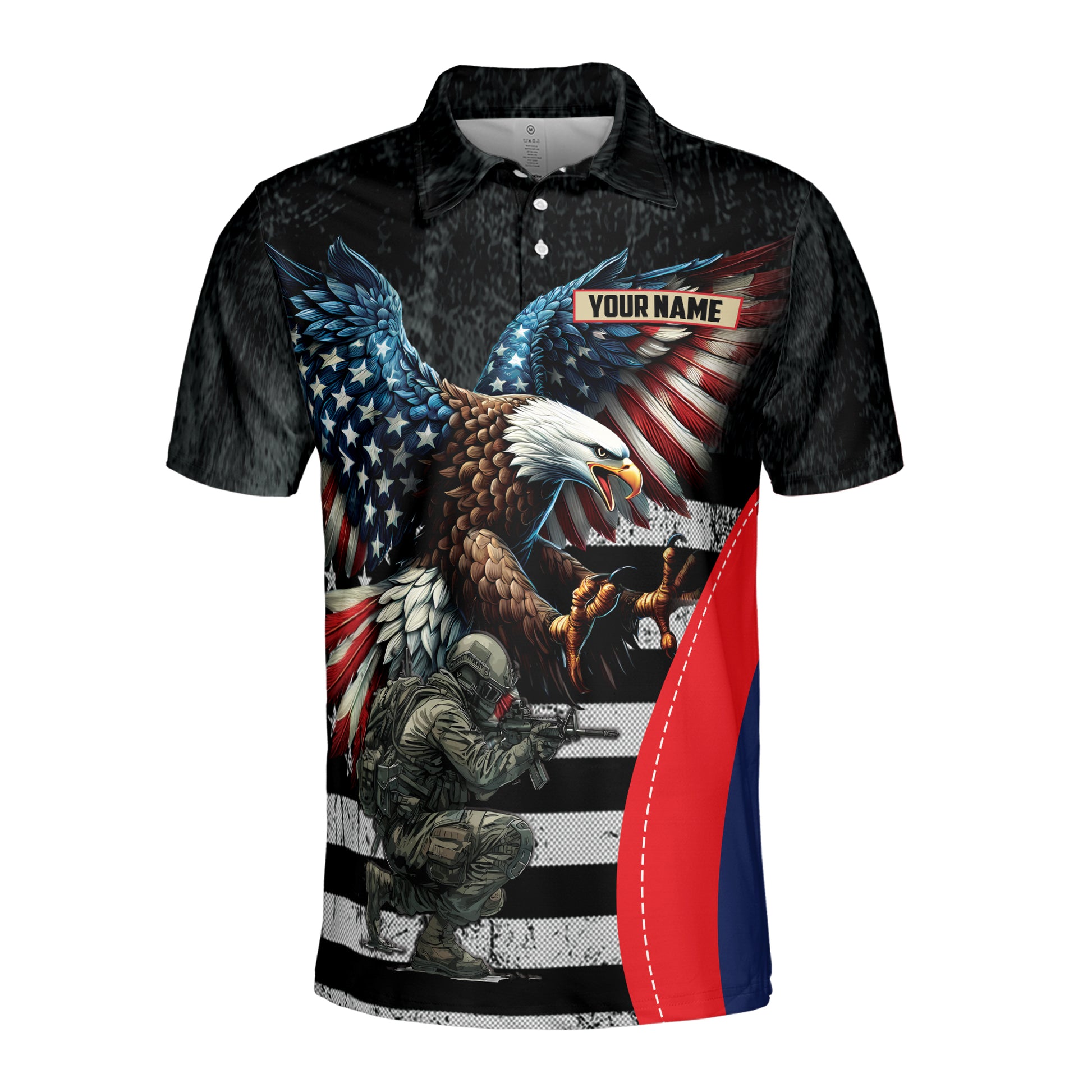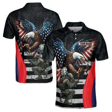 Custom Name U.S Veteran American Flag Eagle Pattern Men's Polo Shirt S-5XL