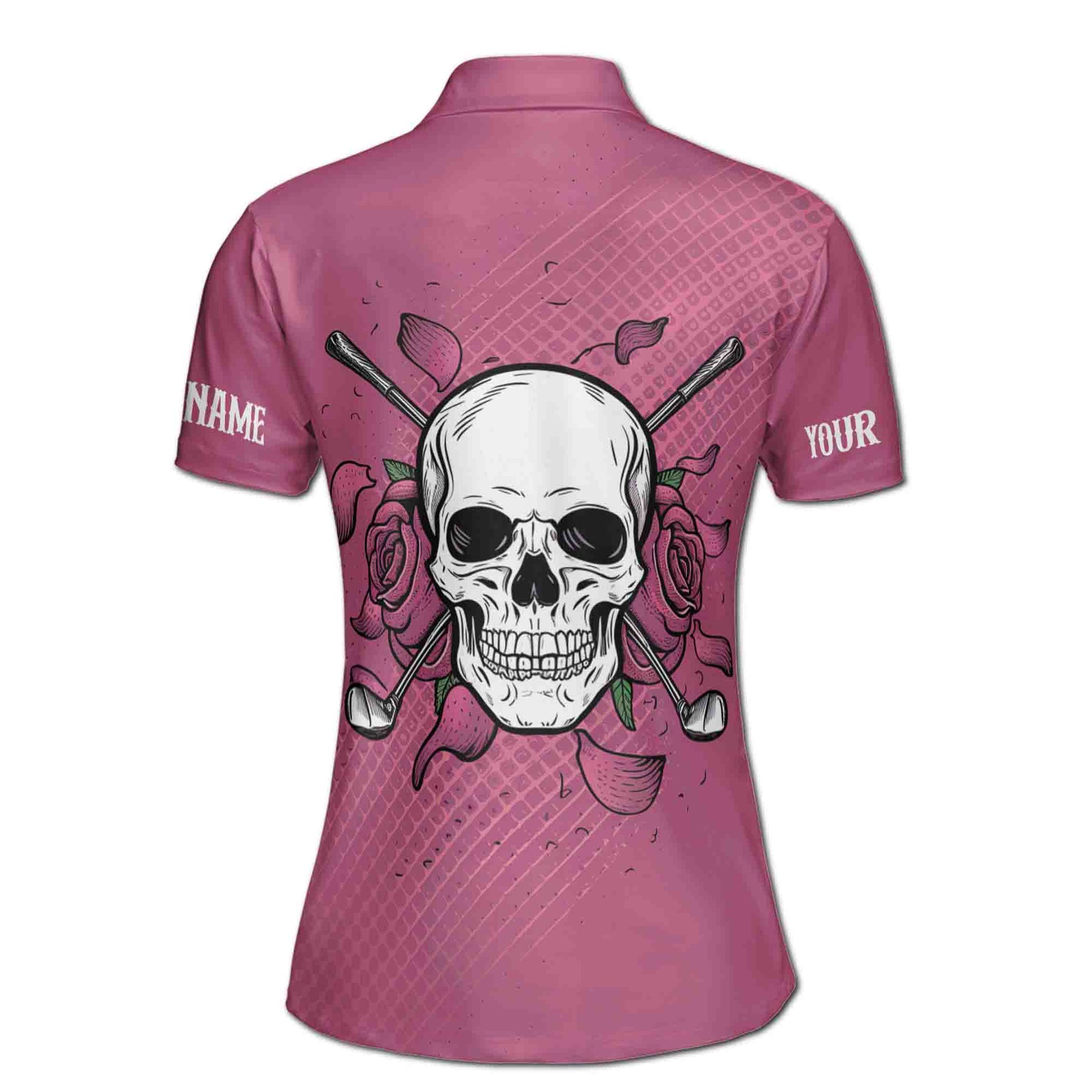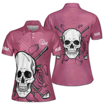 Custom Name Golf with Skull and Rose Women's Polo S-5XL