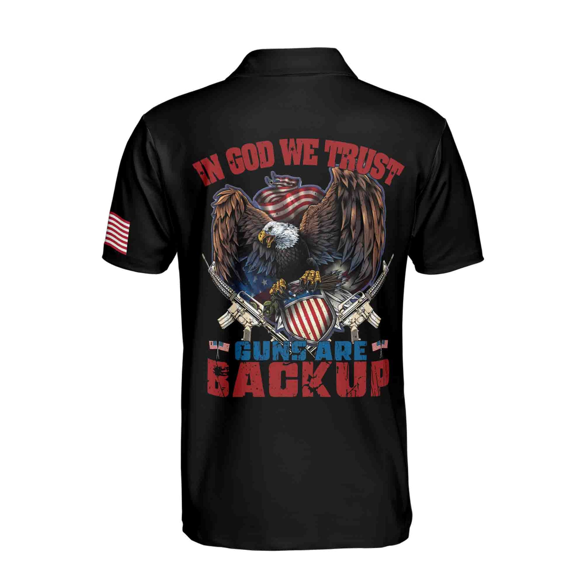 Custom Name Veteran American Eagle In God We Trust Guns Backup Men's Polo Shirt S-5XL