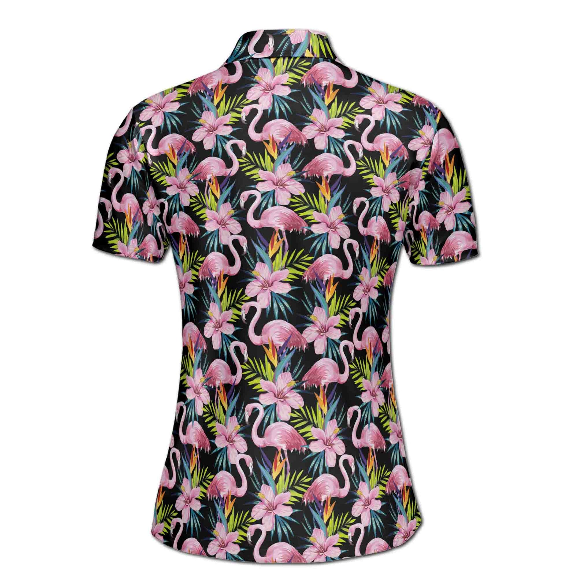 Custom Name Flamingo With Tropical Floral Women's Polo Shirt S-5XL