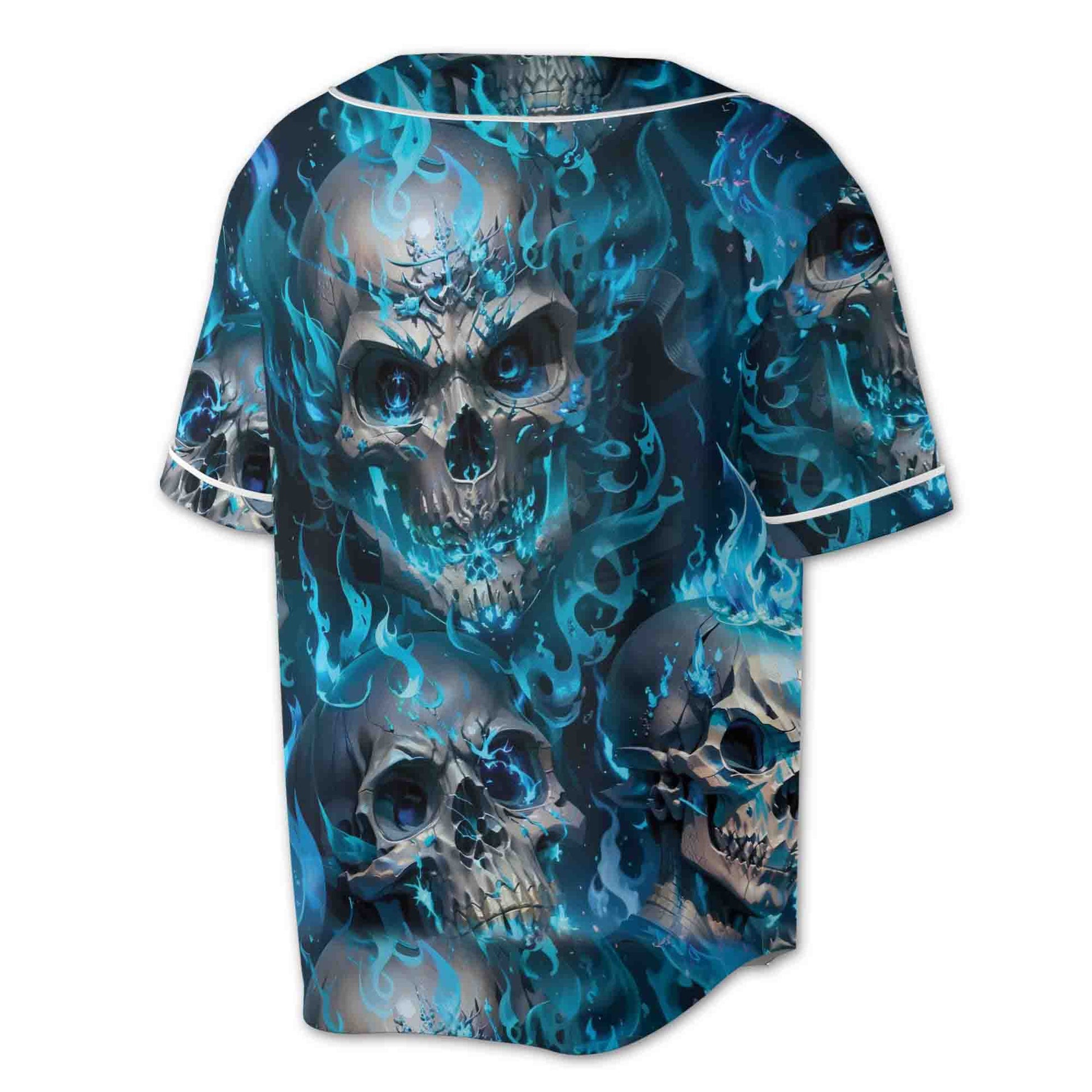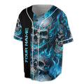 Custom Name Your Deepest Nightmare Skull on Fire Blue Baseball Jersey S-5XL