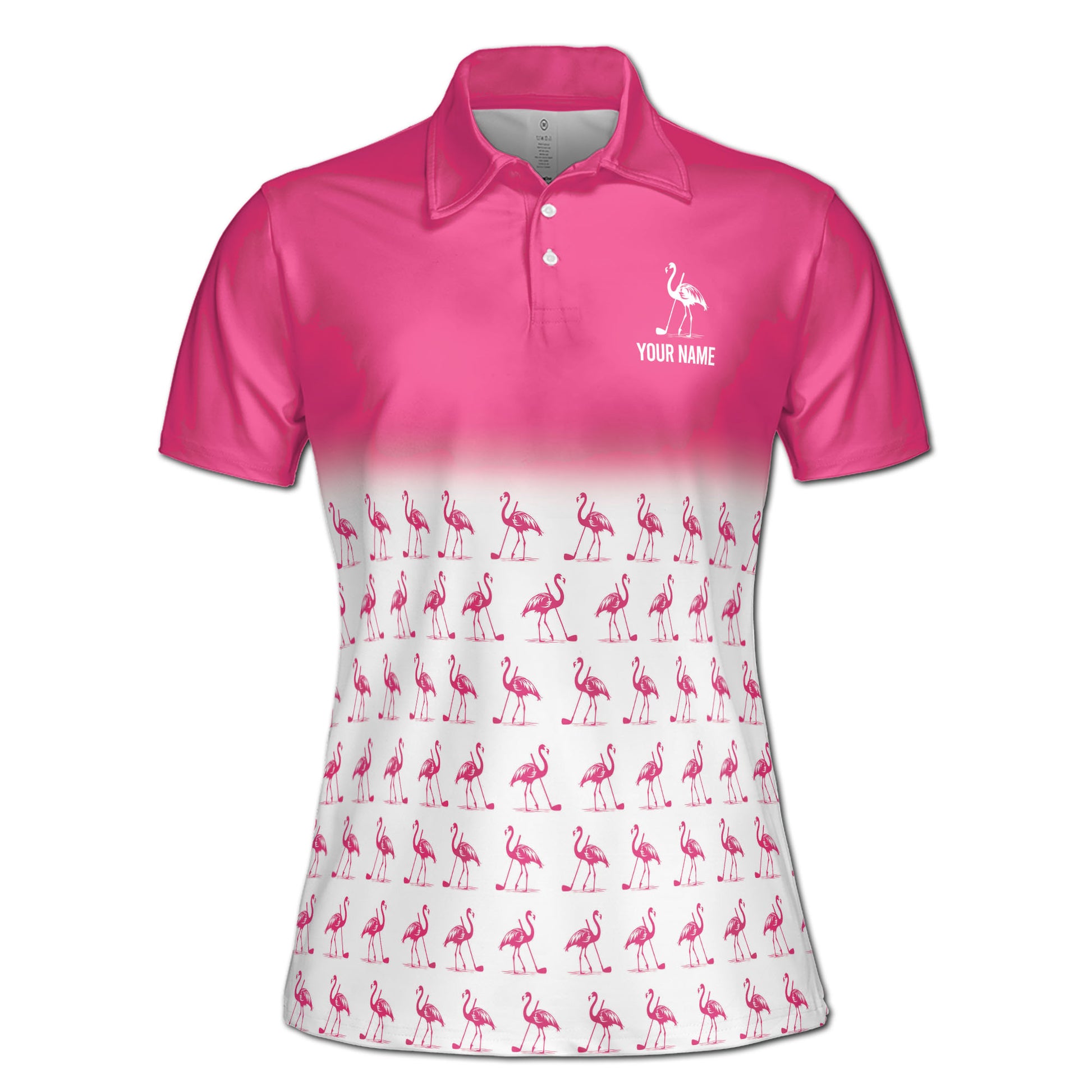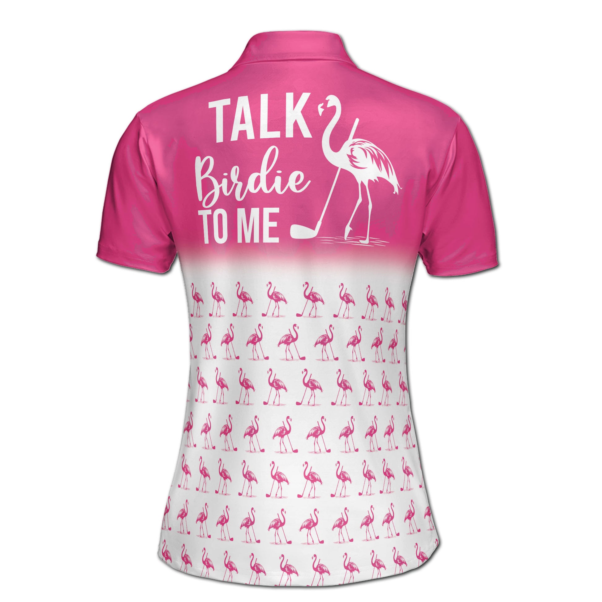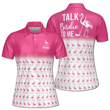 Custom Pink Flamingo Pattern Talk To Me Birdie Women's Polo Shirt S-5XL