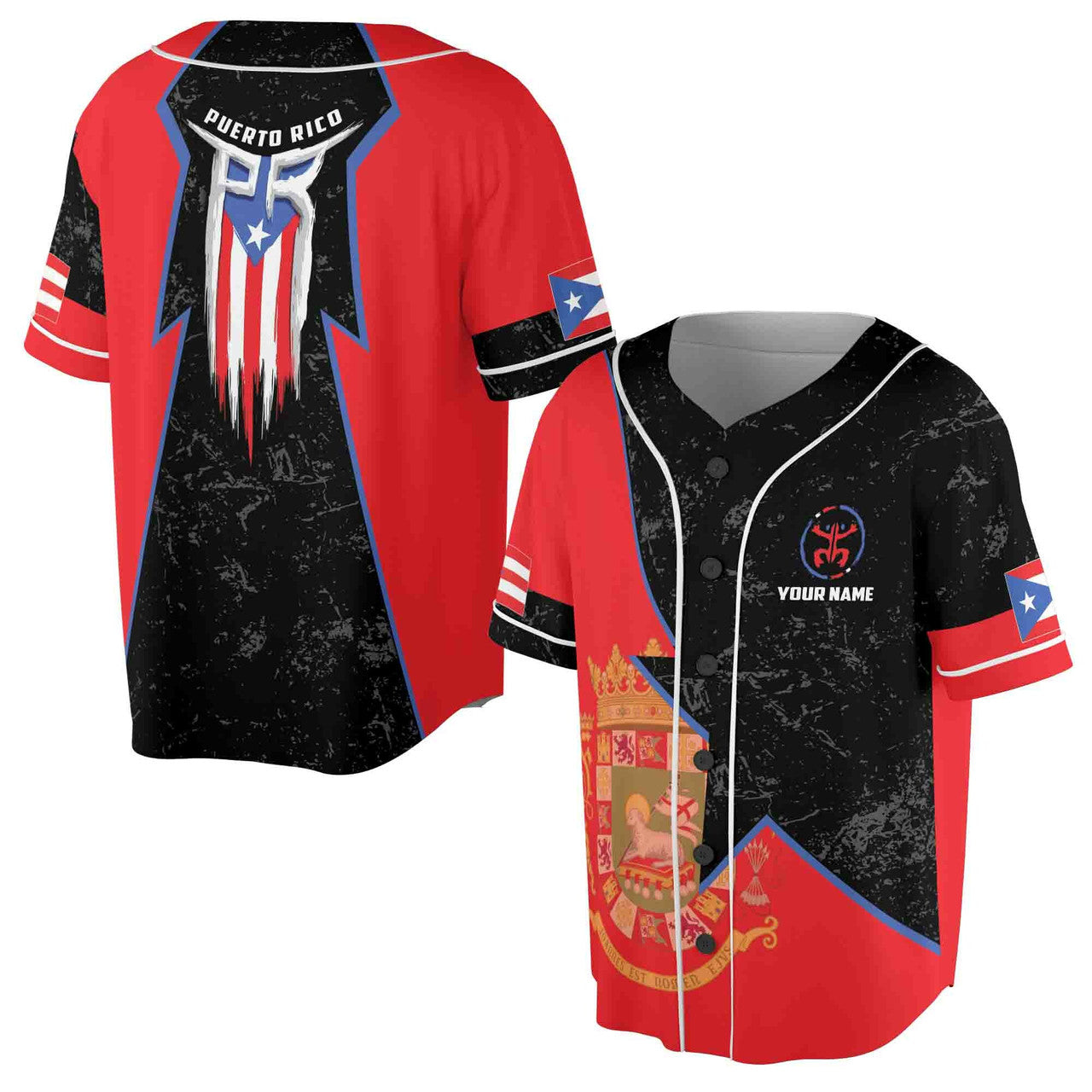 Custom Puerto Rico Coat Of Arms Flag Baseball Jersey S-5XL