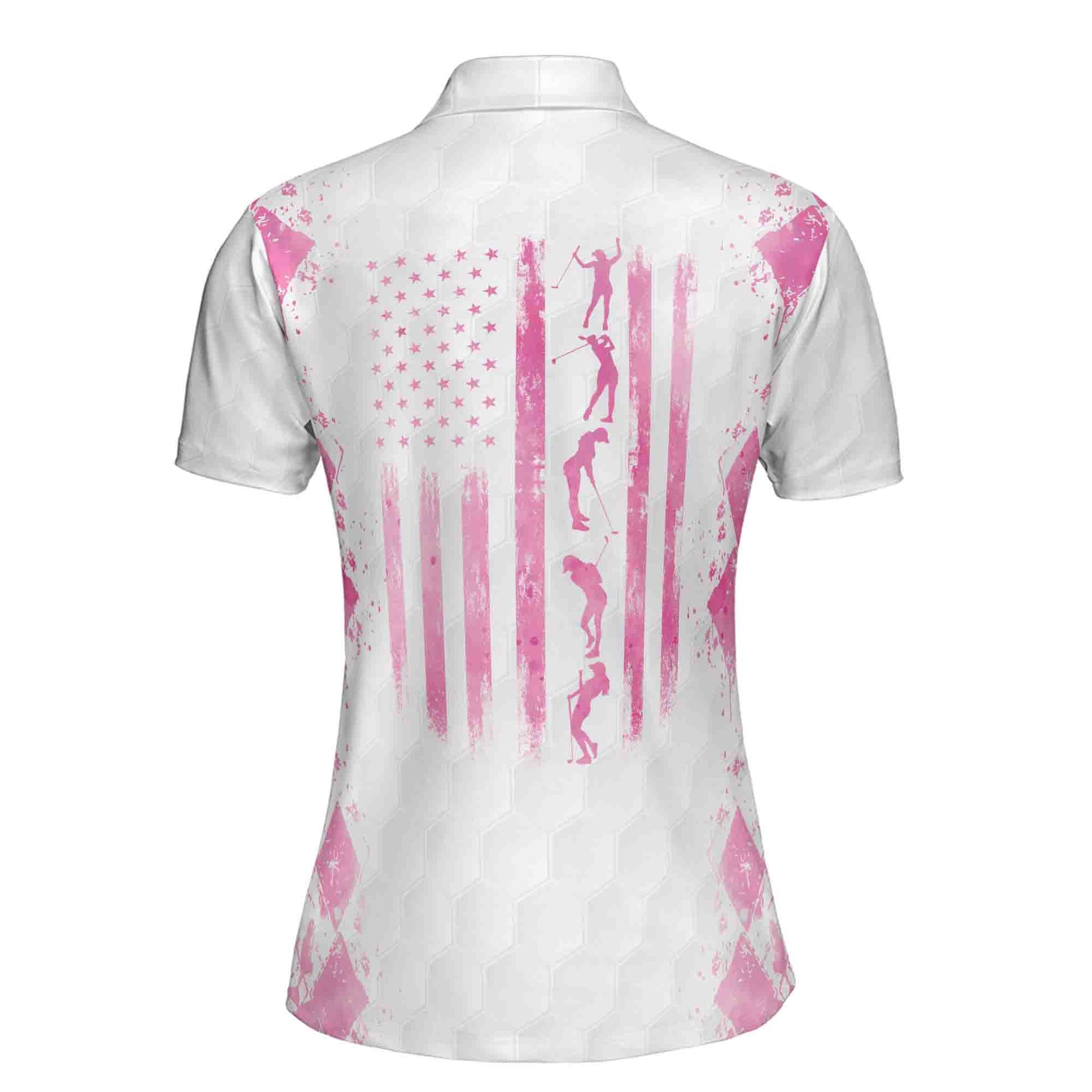 Customize Name American Flag Golf Postures Pink Plaid Women's Polo Shirt S-5XL