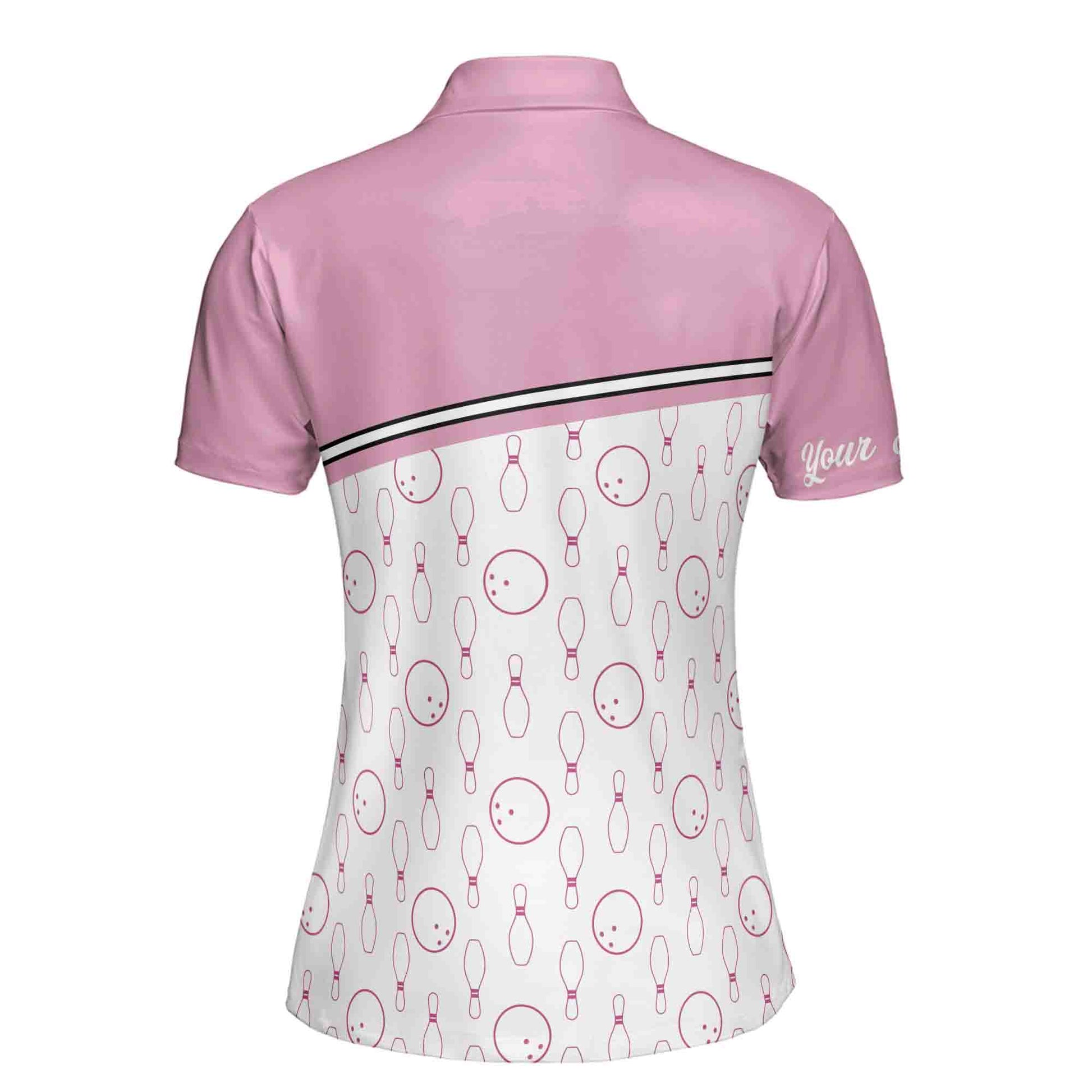 Customize Name Bowling Pins Pink Women's Polo Shirt S-5XL