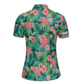 Customize Name Floral Tropical Flamingo Golfing Women's Polo Shirt S-5XL