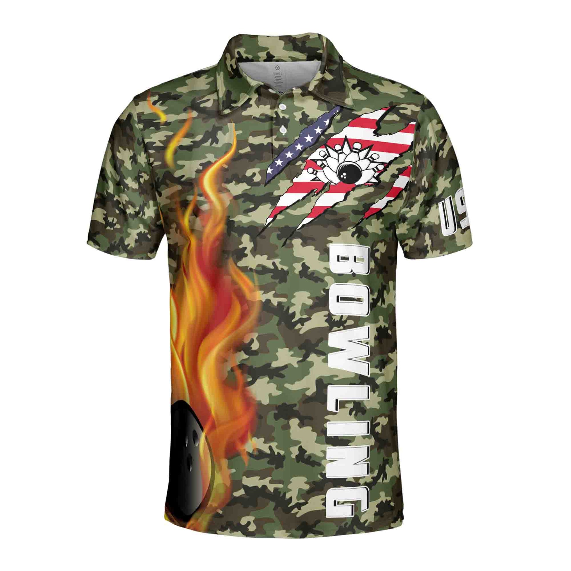 Customize Name, Team name, American Eagle Bowling Flame Camouflage Men's Polo Shirt S-5XL