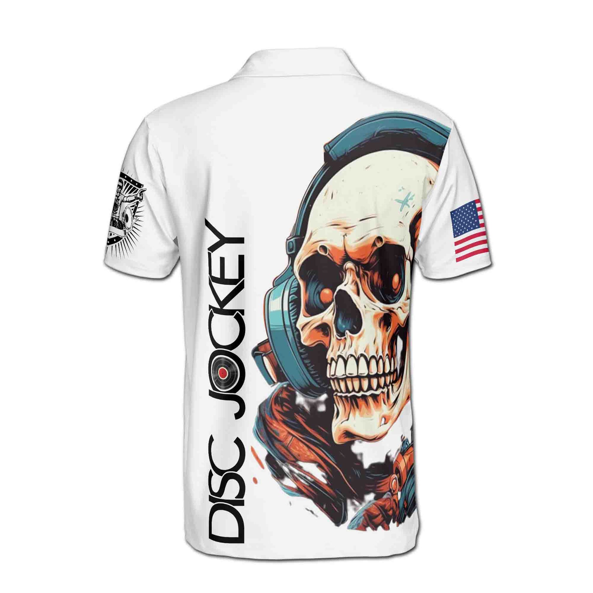 Customized Name Disc Jockey Skull DJ Men's Polo Shirt S-5XL
