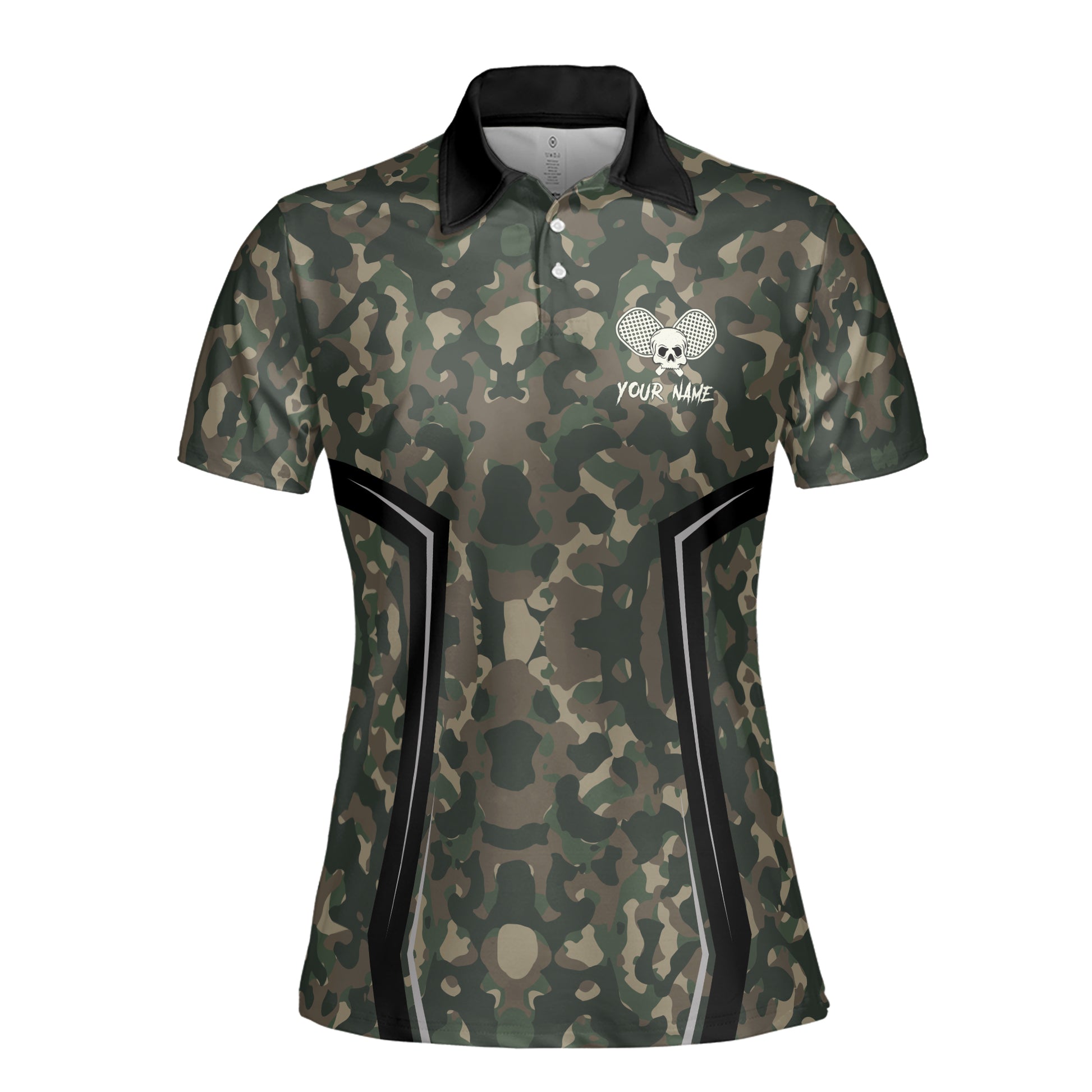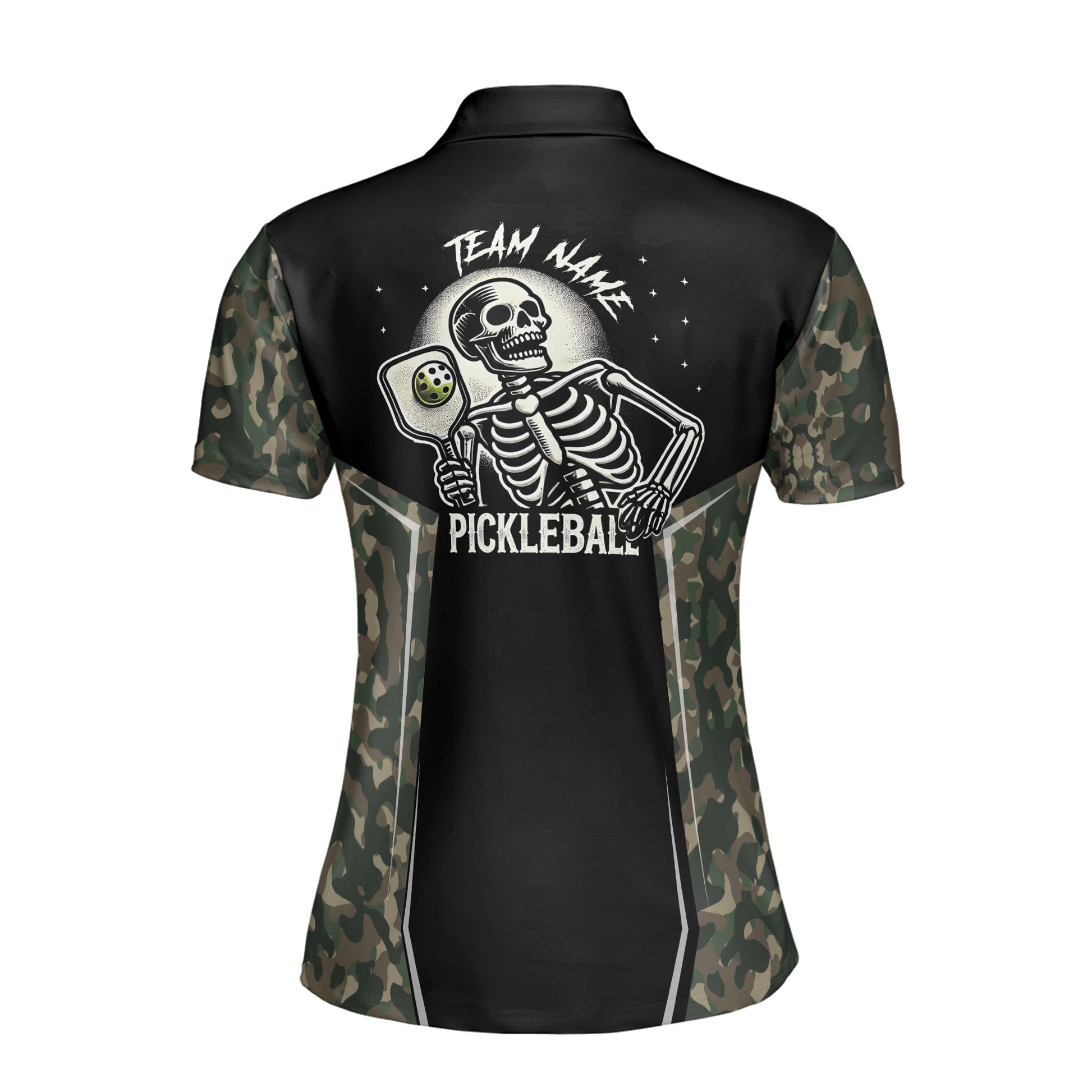 Personalized Name Camo Pattern Skull Plays Pickleball Women's Polo Shirt S-5XL