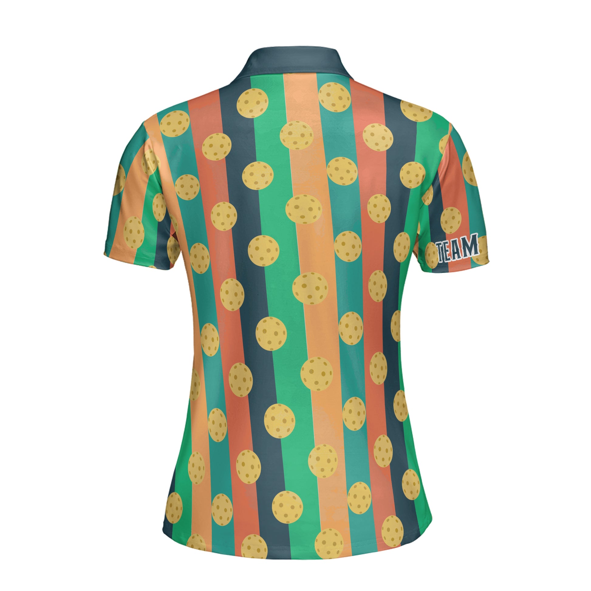 Customized Name Funny Retro Pickleball Pattern Women's Polo Shirt S-5XL