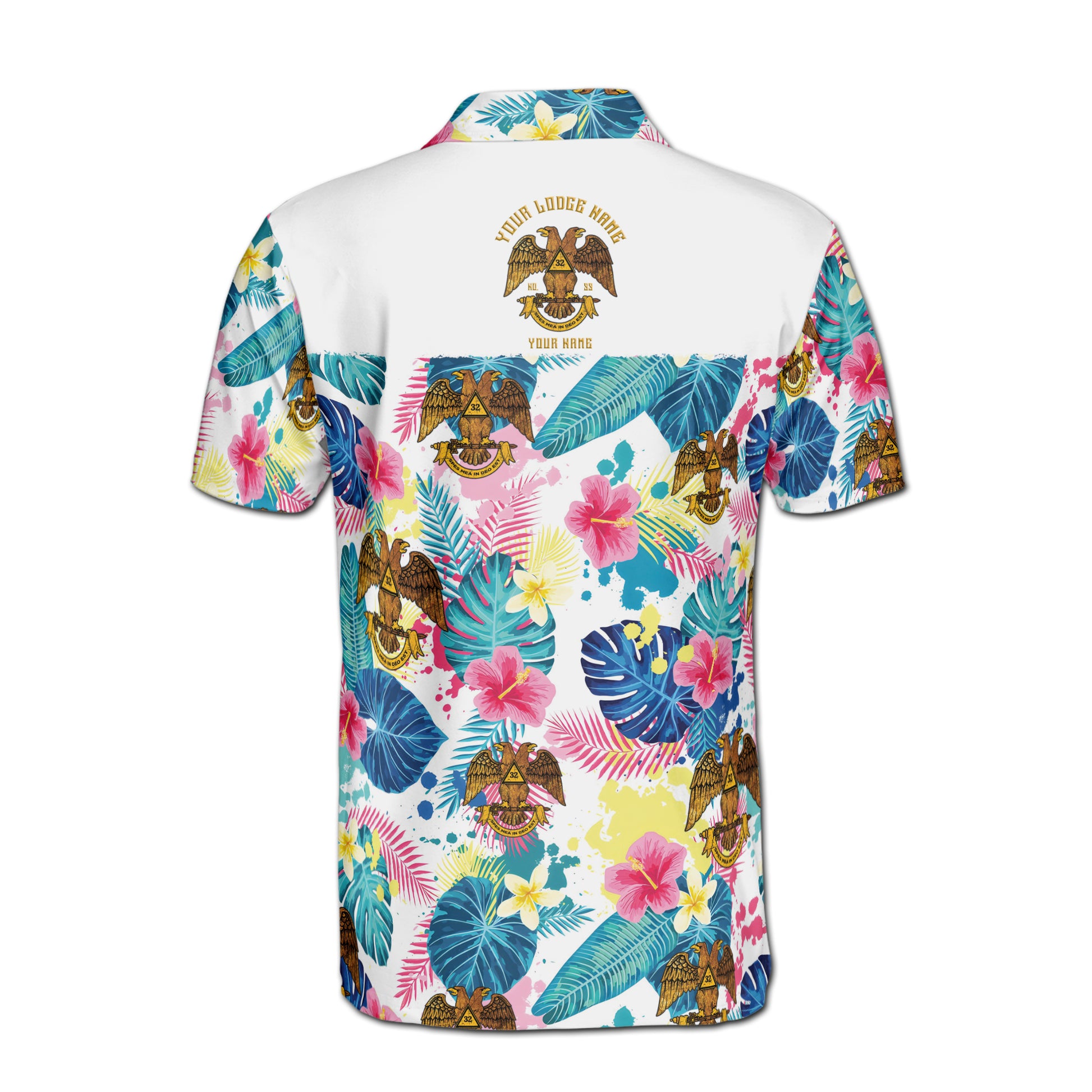 Customized Scottish Rite 32 Colorful Palm Leaf Men's Polo Shirt S-5XL