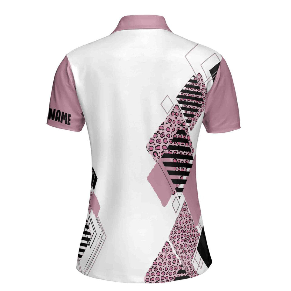 Pink Golf Polo White Shirt Leopard Pattern Custom Name Golf Gift Women's Polo Shirt S-5XL