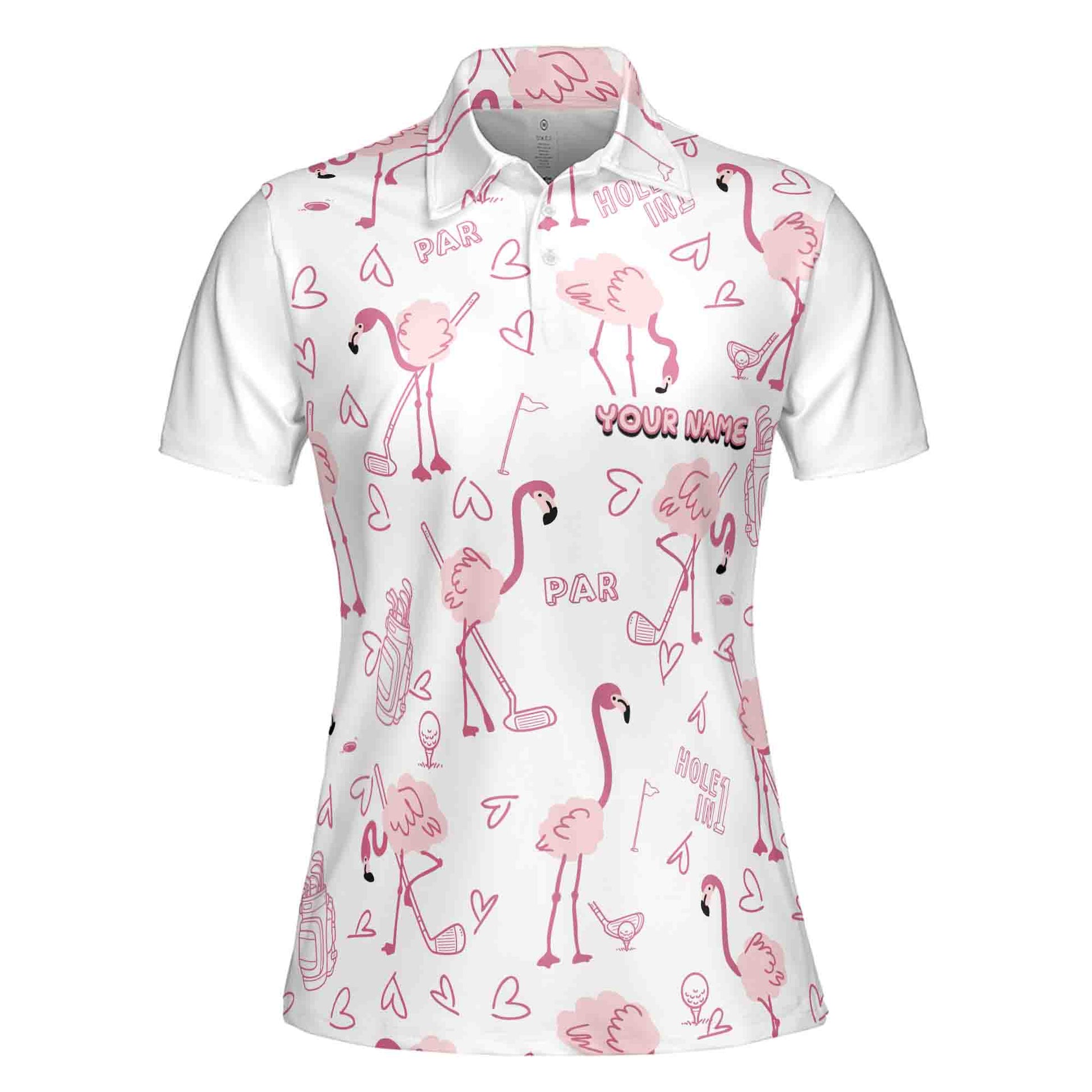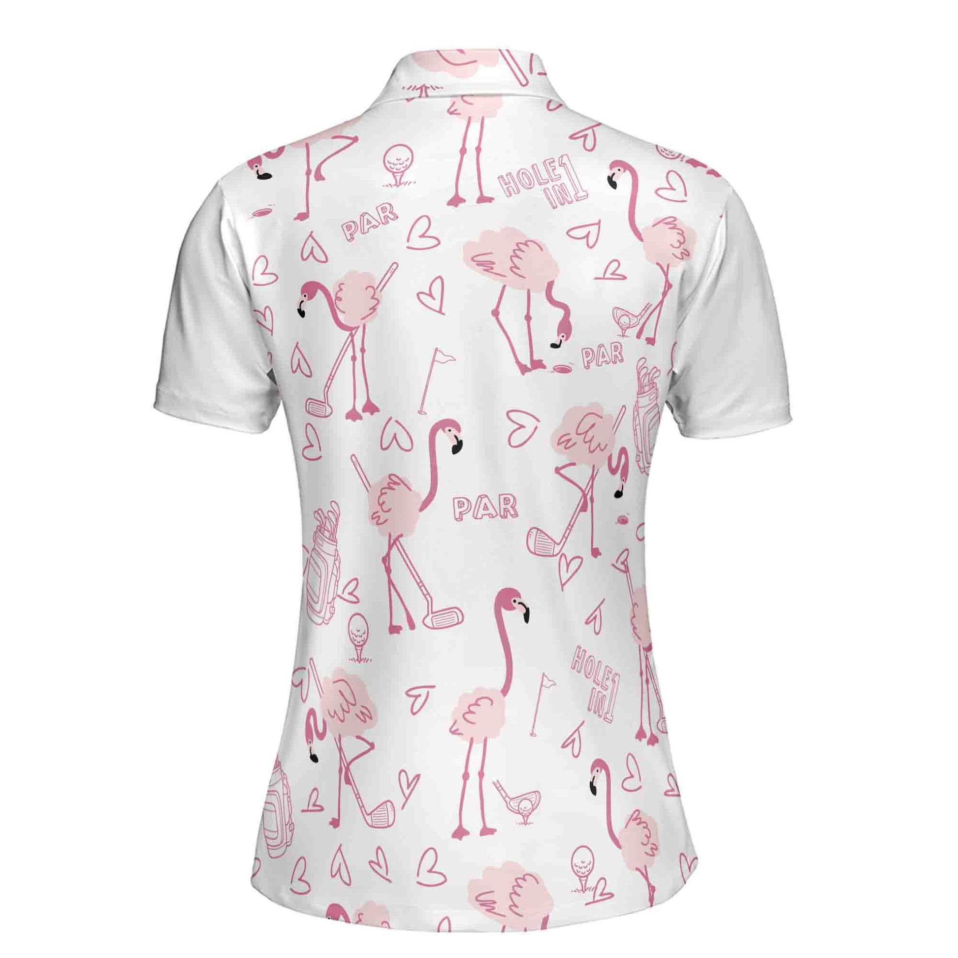 Cute Flamingo Playing Golf Pattern White Golf Team Women's Polo Shirt S-5XL