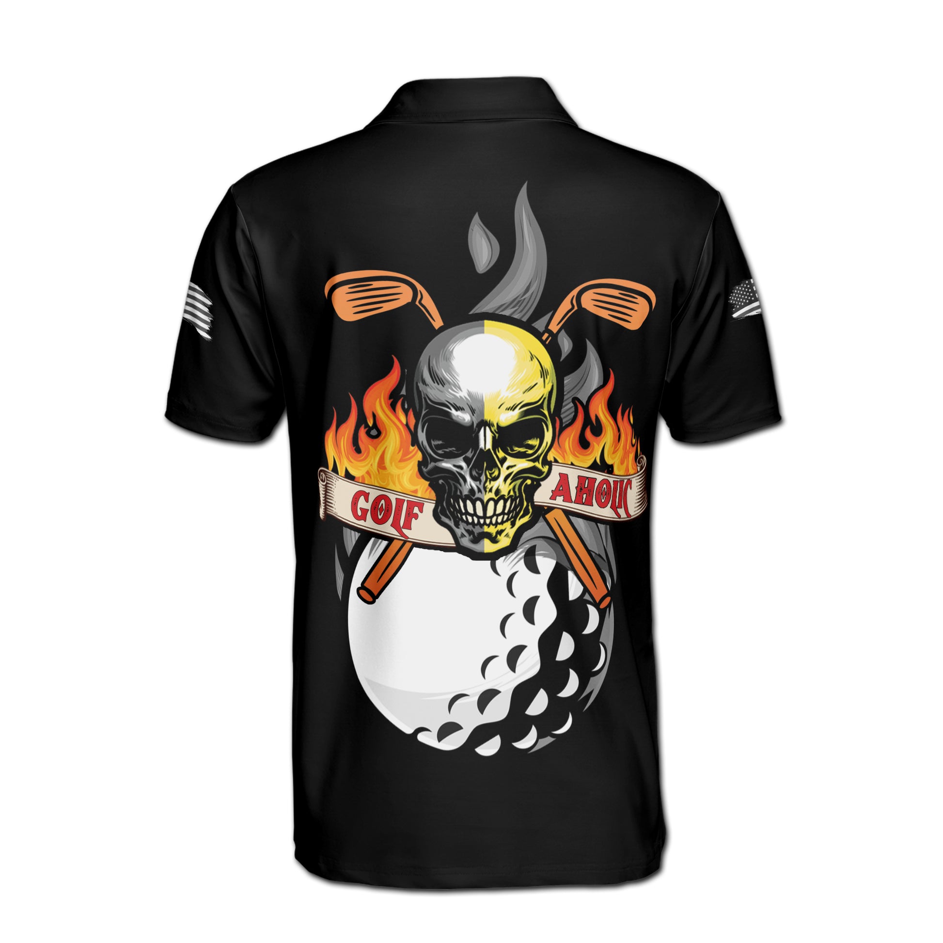 Dark Skull Golfer Golf Aholic On Fire Men's Polo Shirt S-5XL