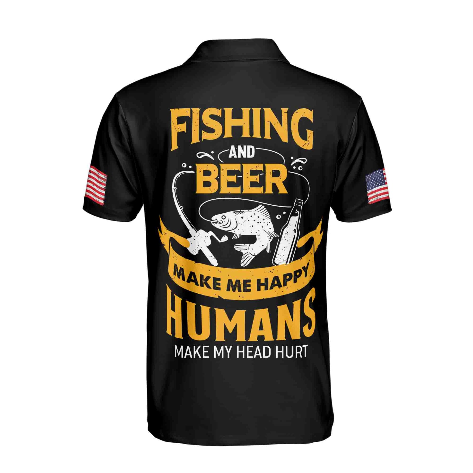 Fishing And Beer Make Me Happy Bigfoot Fishing Men's Polo Shirt S-5XL