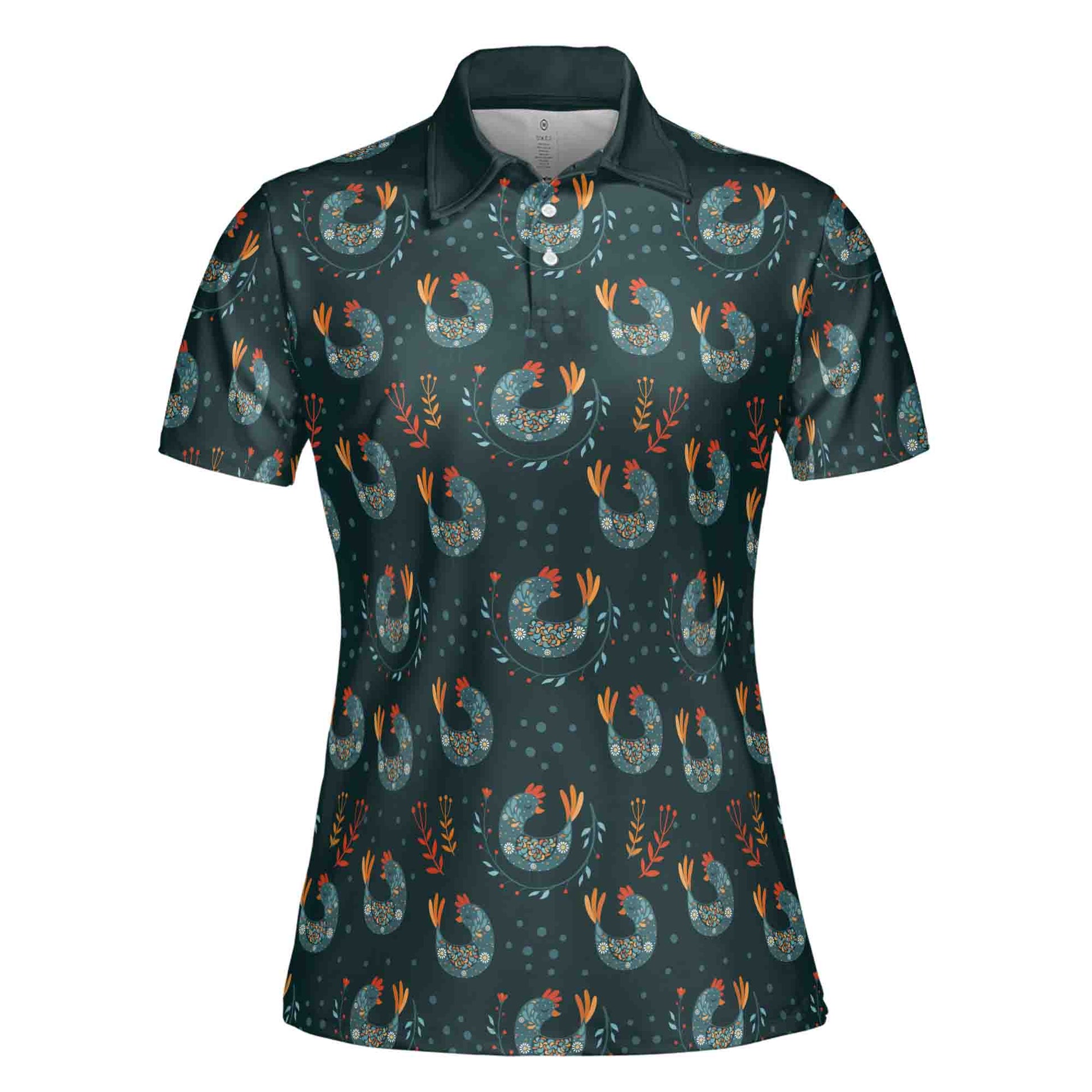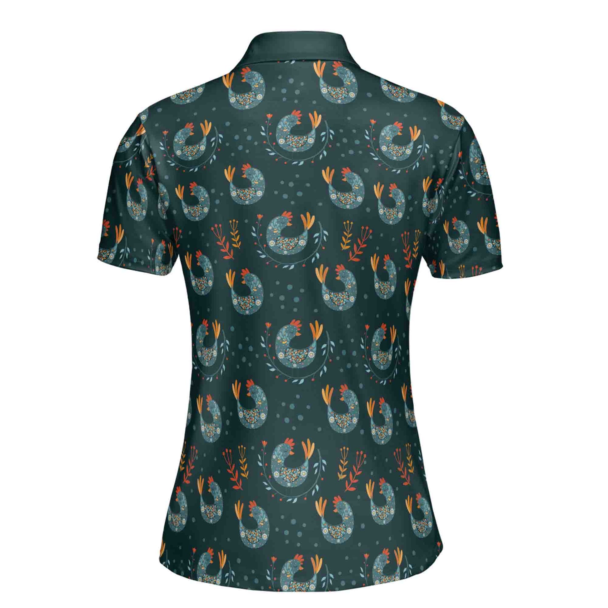 Funny Cute Floral Folk Bird Pattern Golf Women's Polo Shirt S-5XL