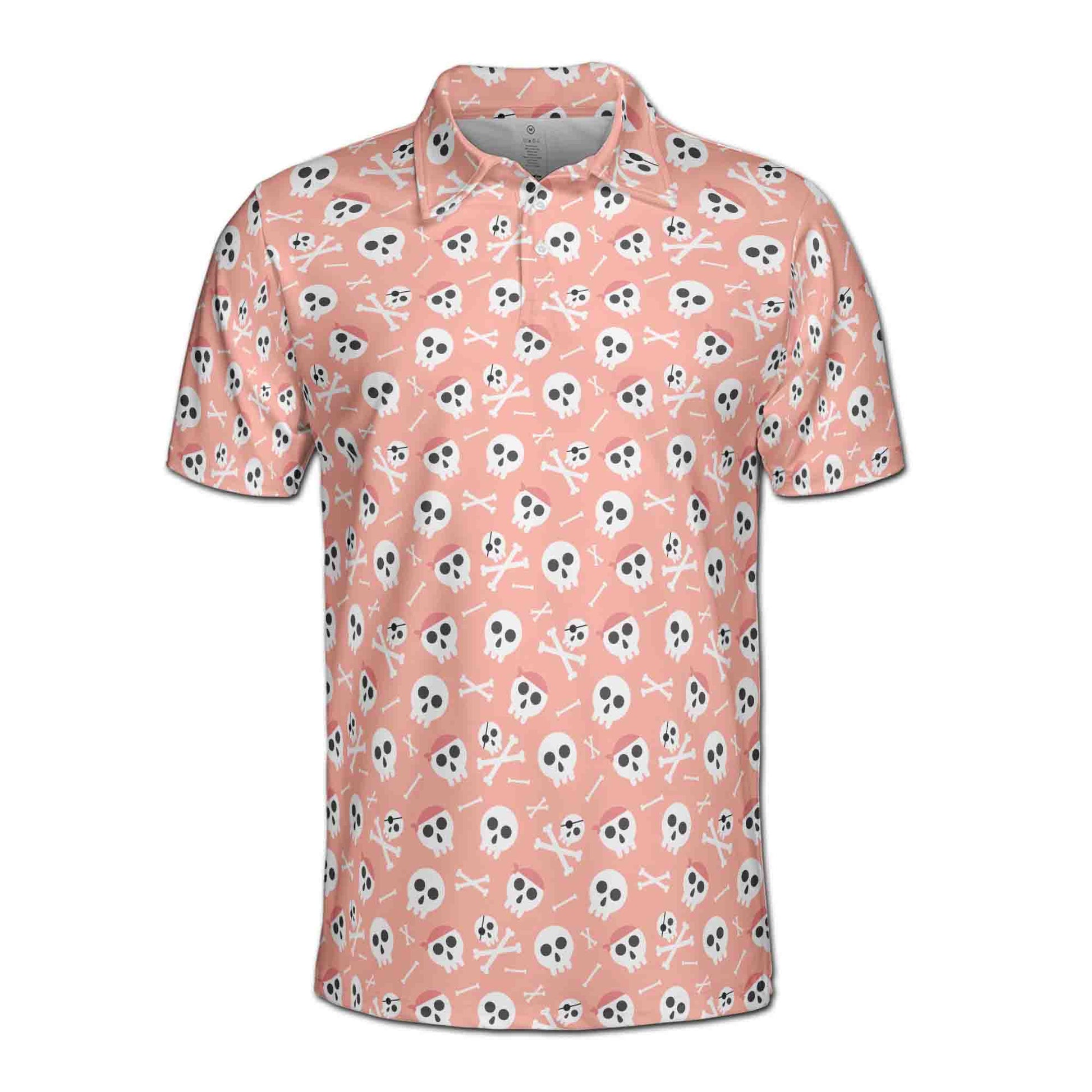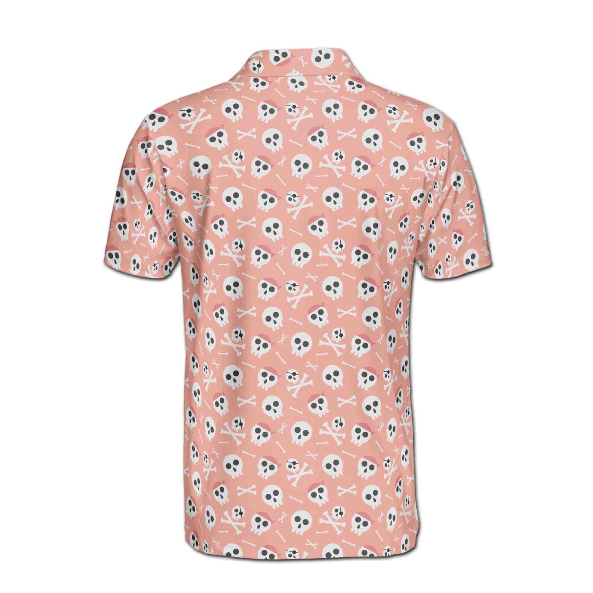 Funny Cute Pirate Skull Doodle Pink Men's Polo Shirt S-5XL