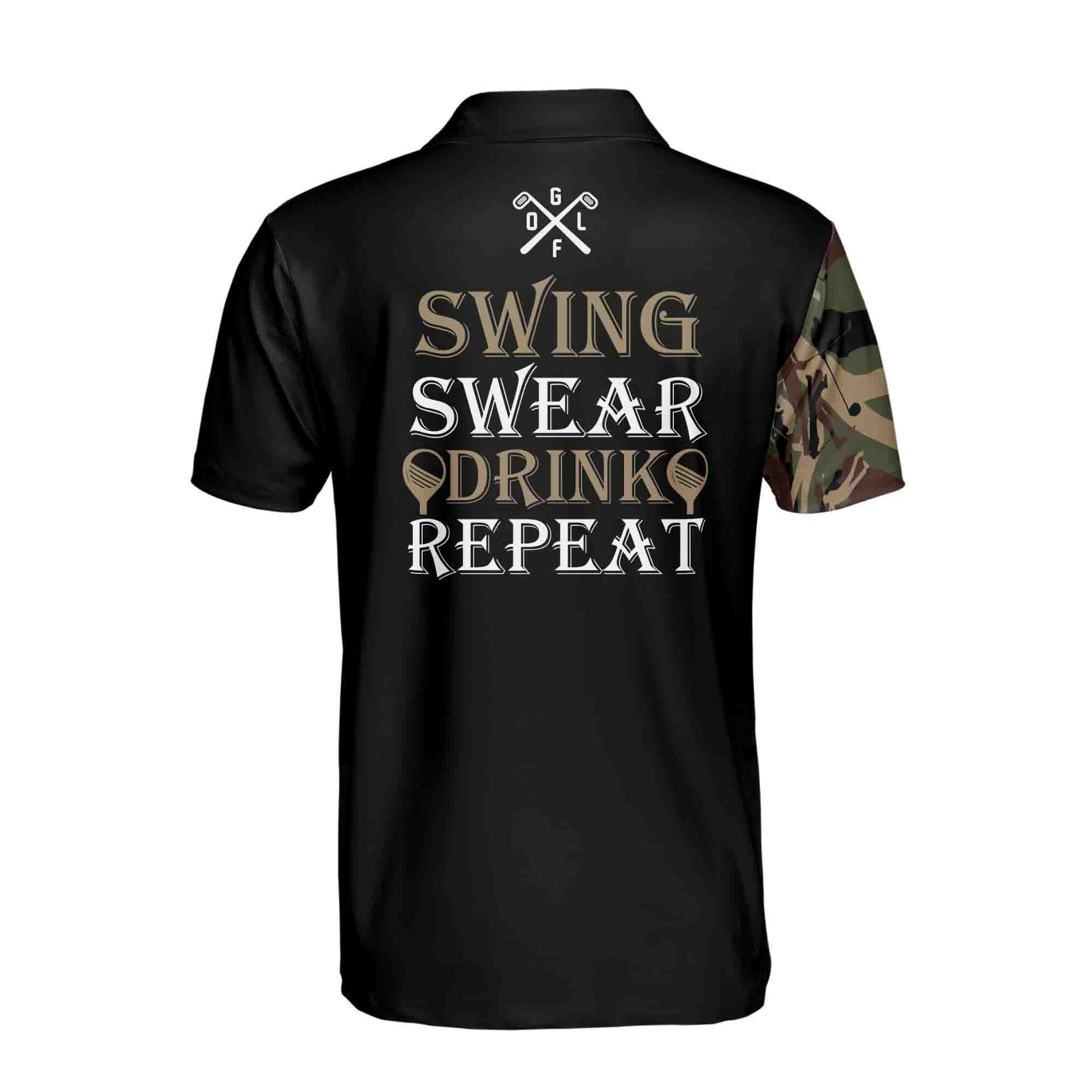 Funny Golf Skull Camo Swing Swear Drink Repeat Golf Team Men's Polo Shirts S-5XL