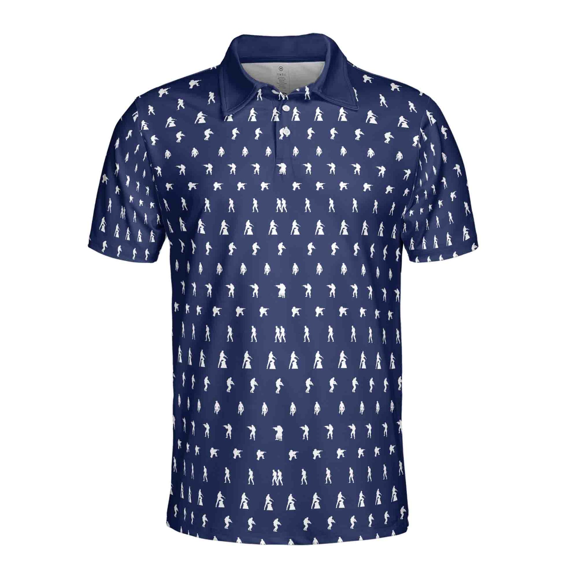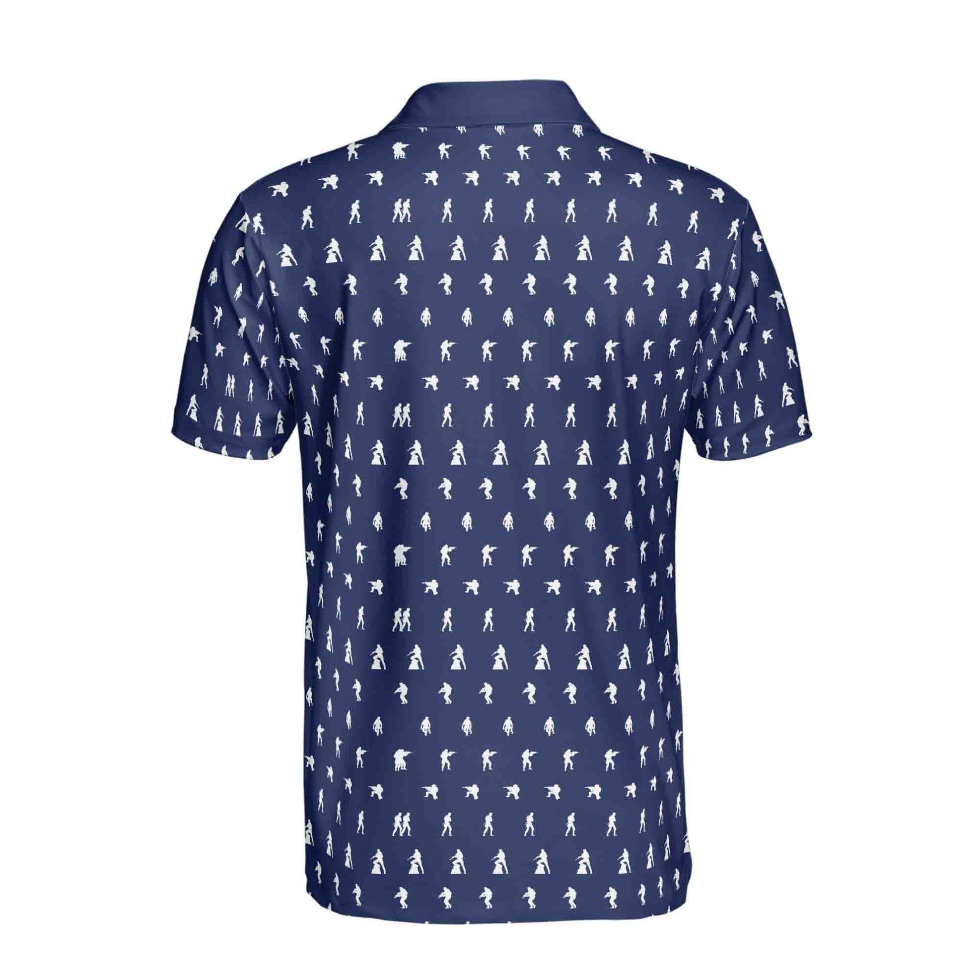 Funny Gun American Soldier Silhouette Icon Navy Golf Men's Polo Shirt S-5XL