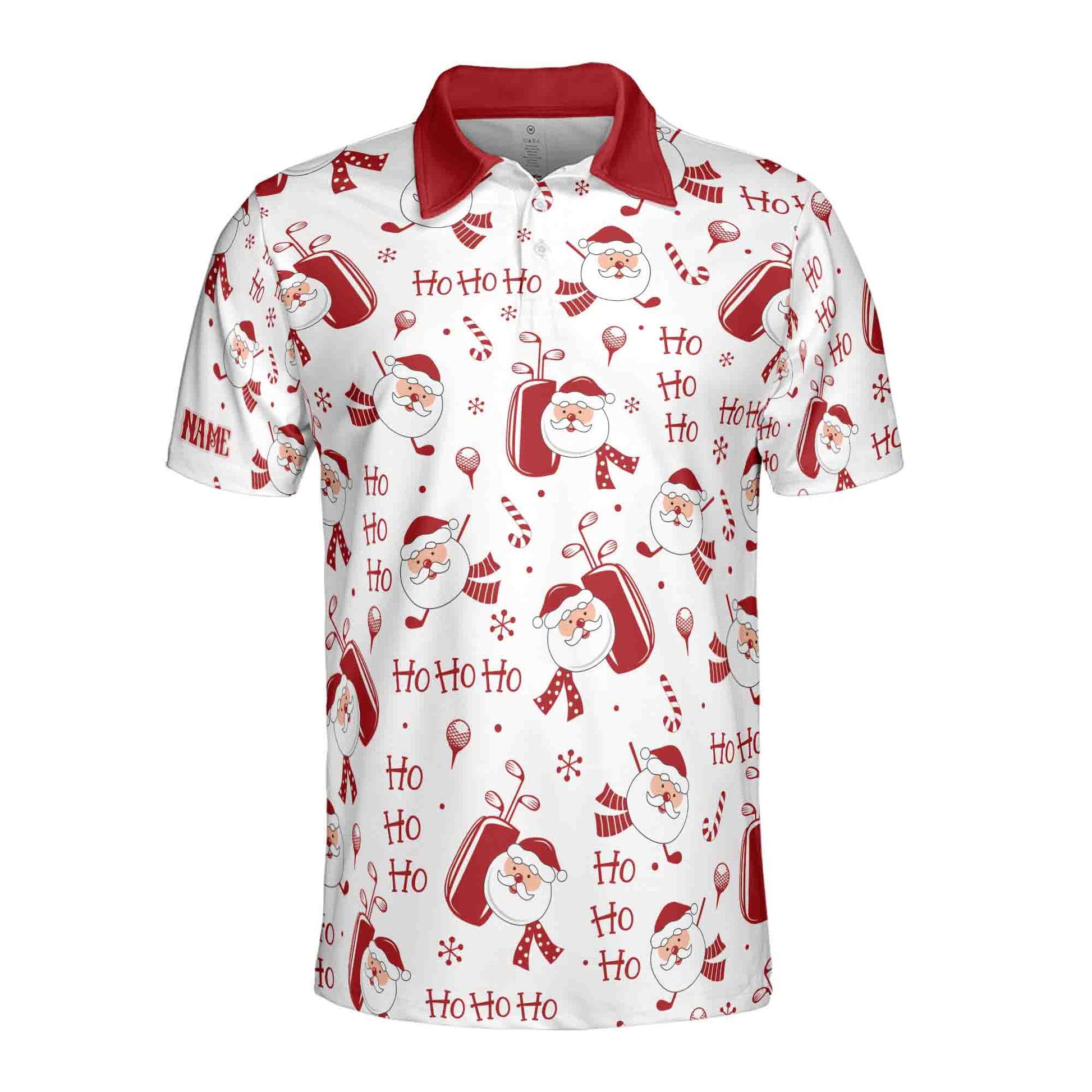 Funny Santa Golf Red White Shirt Custom Your Name, Christmas Gifts For Golfers Men's Polo Shirts S-5XL