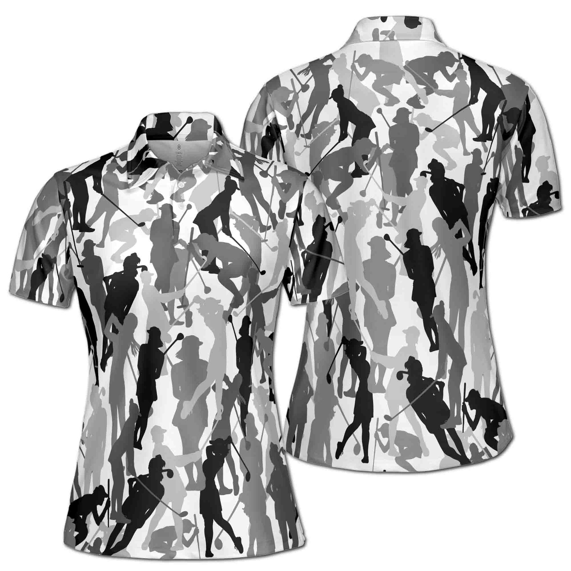 Funny Silhouette Of Woman Playing Golf Women's Polo Shirt S-5XL