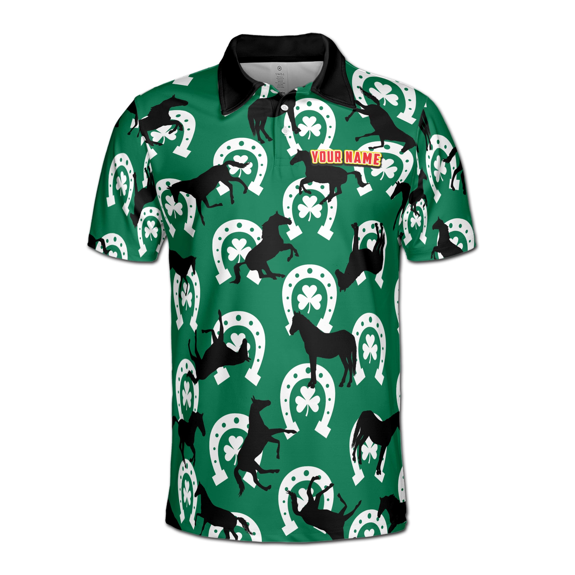 Horse Shamrock Horse Shoes Pattern Men's Polo Shirt S-5XL