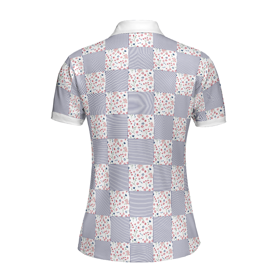 Little Flowers Blue Pink Plaid Golf Short Sleeve Women's Polo Shirts S-5XL