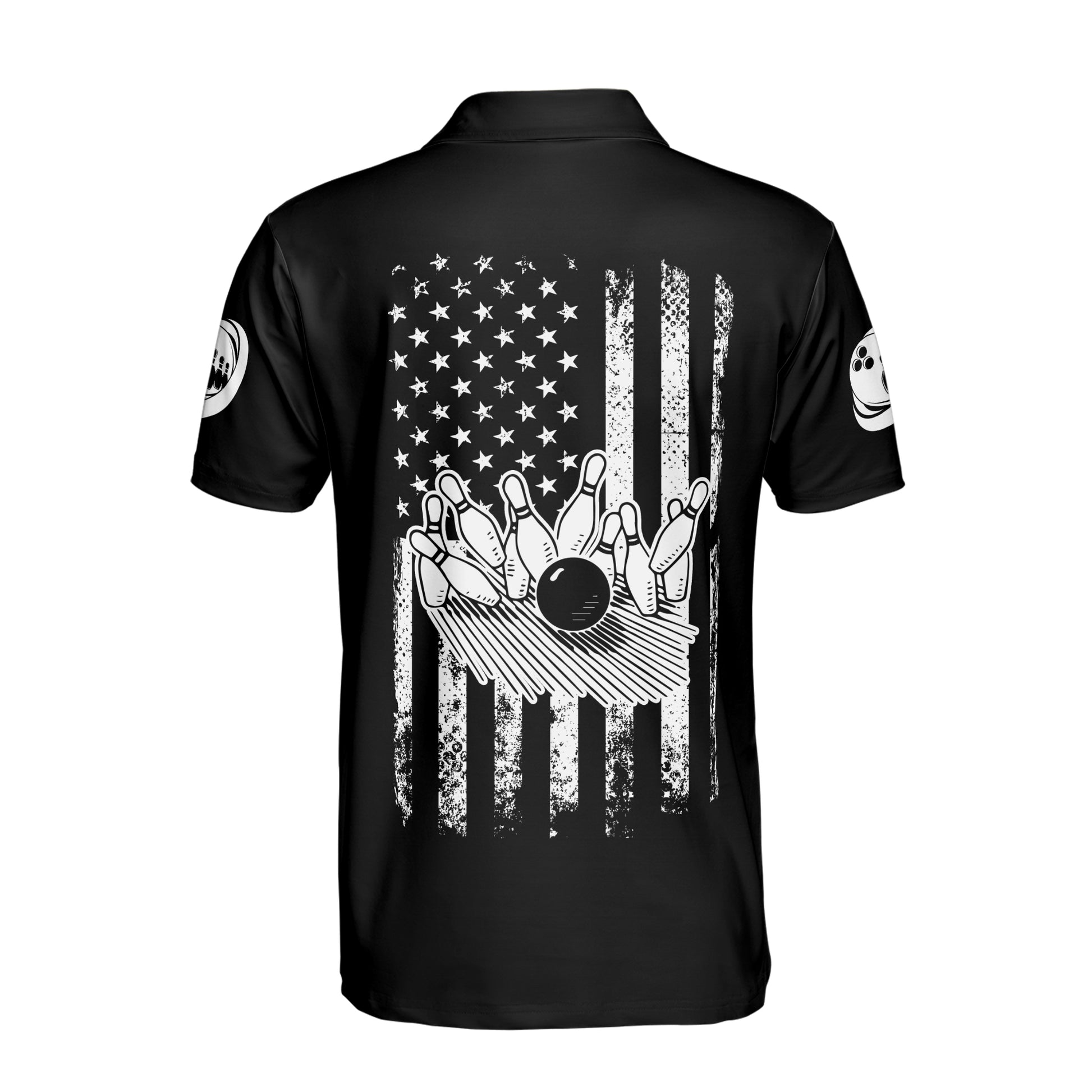Personalized America Flag Skull Bowling Strike Men's Polo Shirt S-5XL