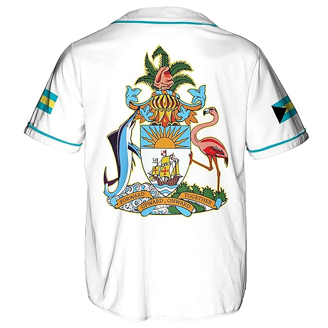 Personalized Bahamas Flag Coat of Arms White Symbol Baseball Jersey S-5XL