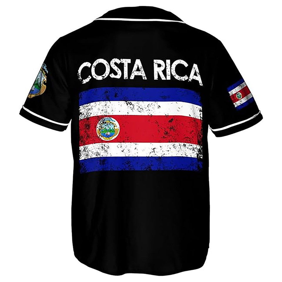 Personalized Costa Rica Flag Coat of Arms Symbol Grunge Black Baseball Jersey S-5XL