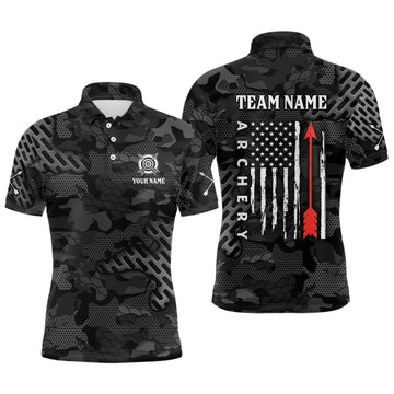 Personalized Dark Camo US Flag Archery Polo Shirt For Men S-5XL
