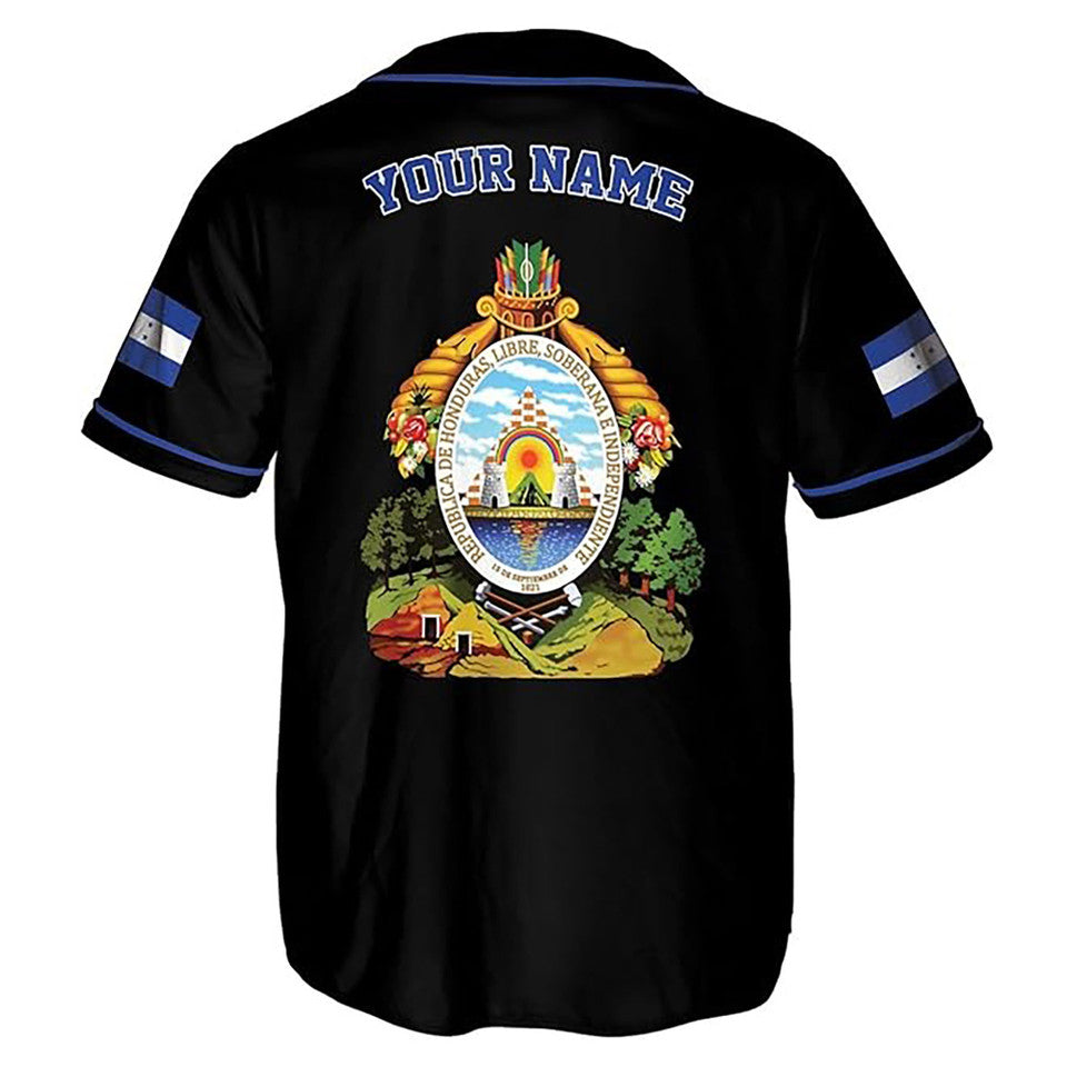 Personalized Honduras Flag Coat of Arms Symbol Black Baseball Jersey S-5XL
