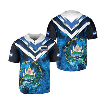 Personalized Name Black Blue El Salvador Baseball Jersey Shirt S-5XL