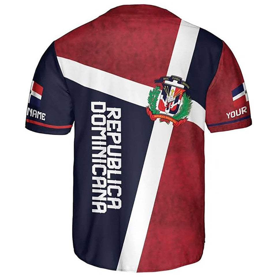 Personalized Name Dominican Republic Flag Coat of Arms Burgundy Red Baseball Jersey S-5XL