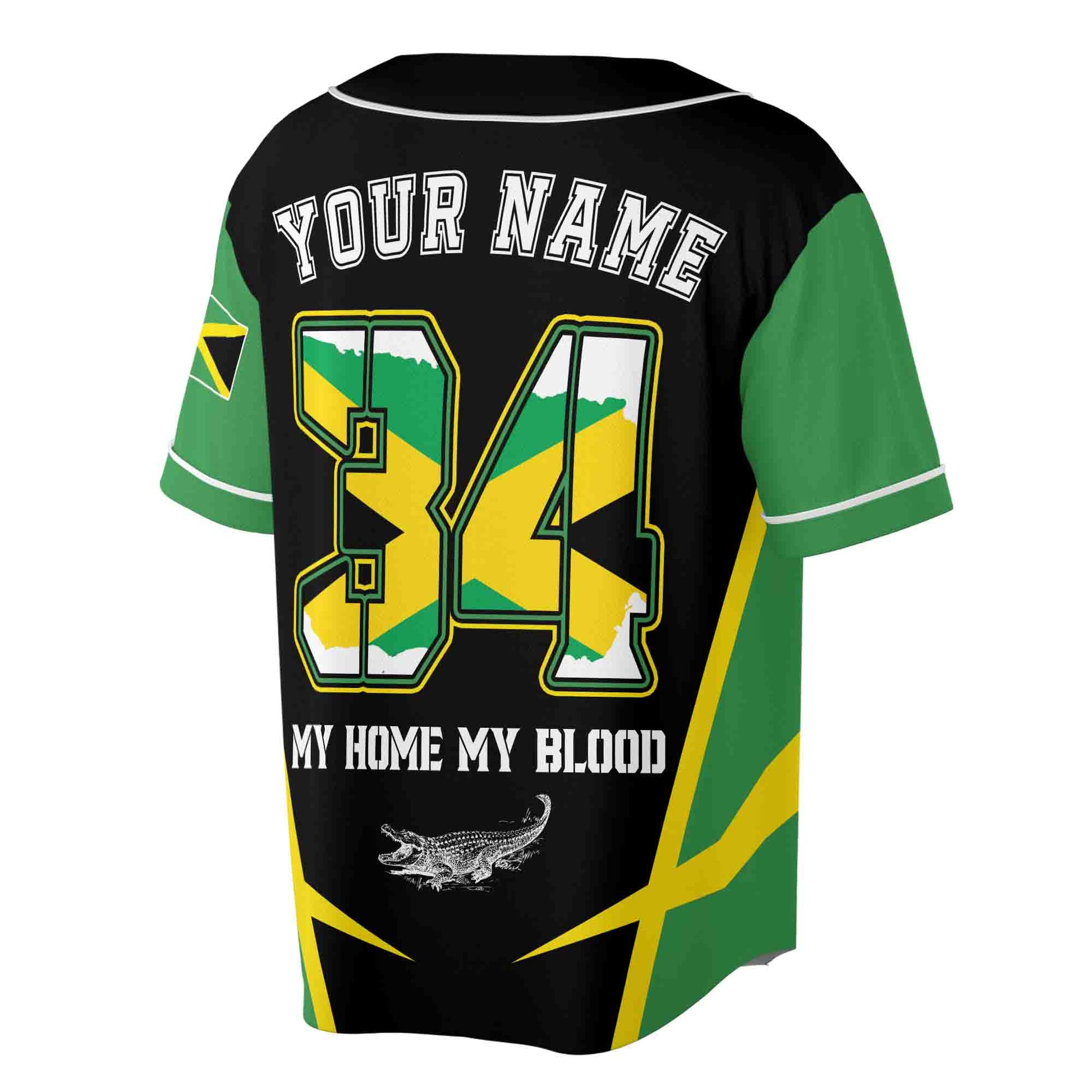 Personalized Name Number Jamaica Flag Lion Crocodile Coat of Arms Patriotic Baseball Jersey S-5XL