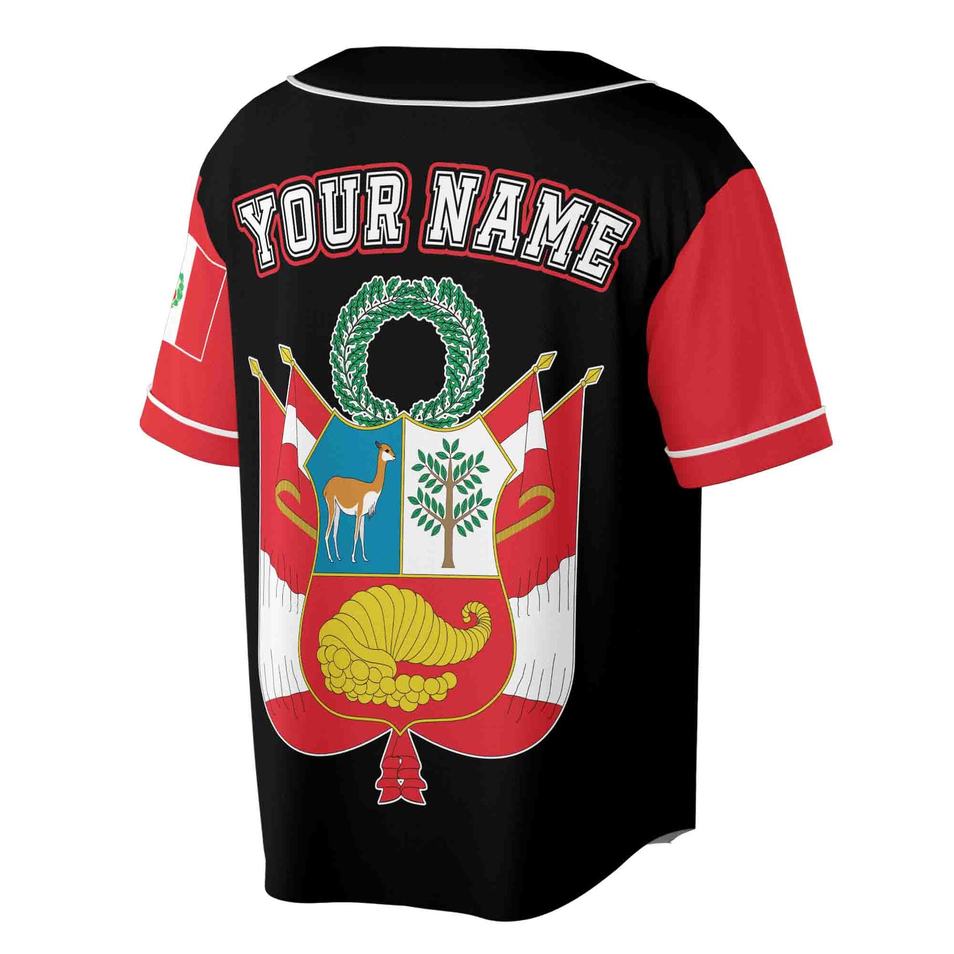 Personalized Name Number Peru Flag Coat of Arms Patriotic Baseball Jersey S-5XL
