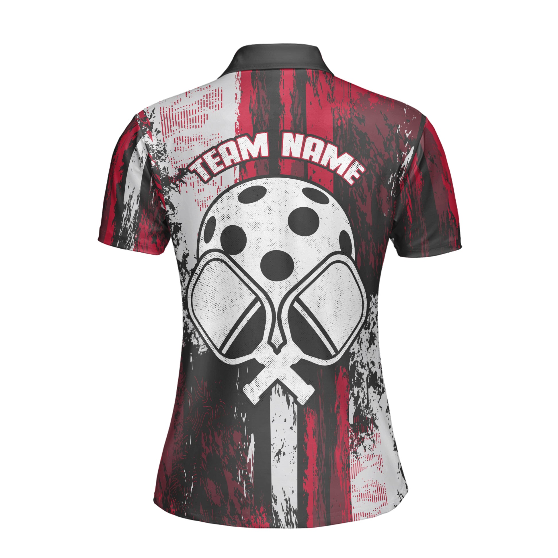 Custom Name Team Name Grunge Art Pickleball Player Women's Polo Shirt S-5XL