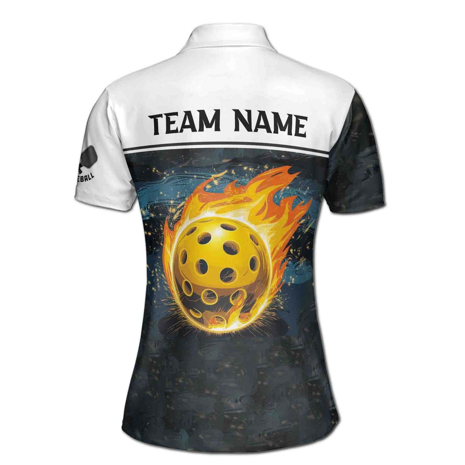 Customized Name Team Pickleball On Fire Women's Polo Shirt S-5XL