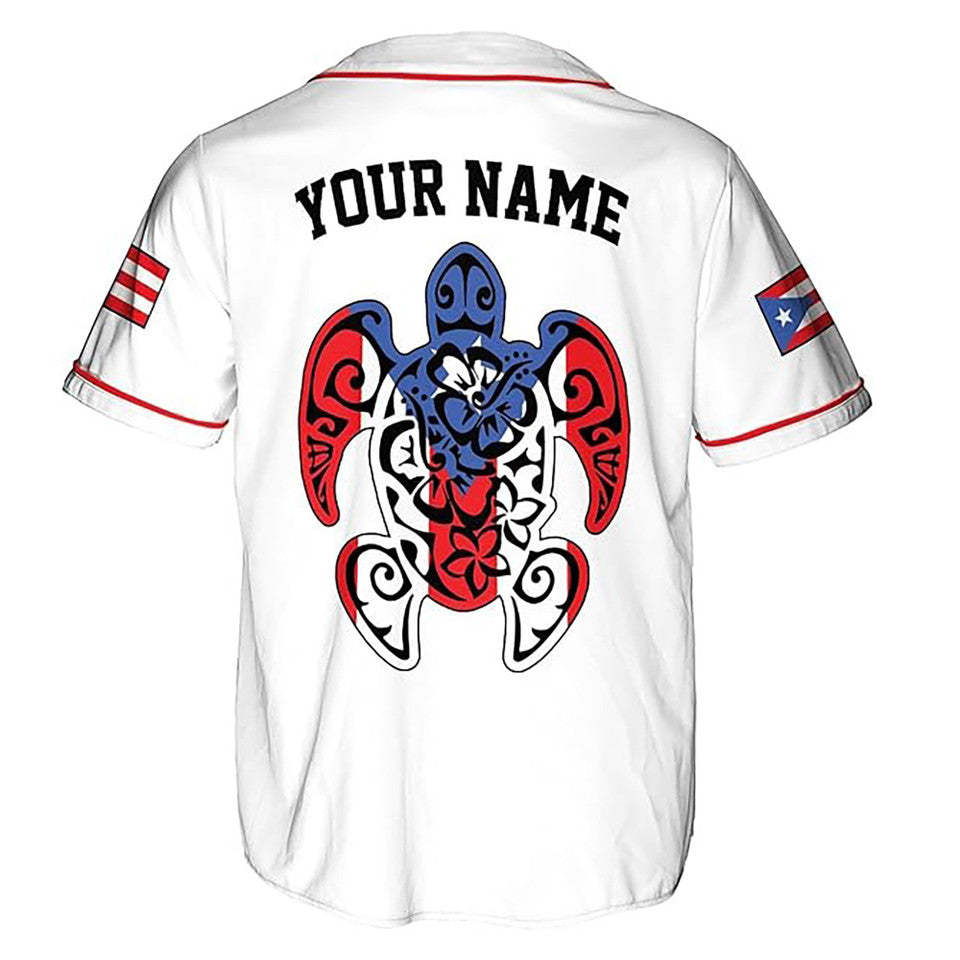 Personalized Puerto Rico Puerto Rican Flag Turtle Symbol White Baseball Jersey S-5XL