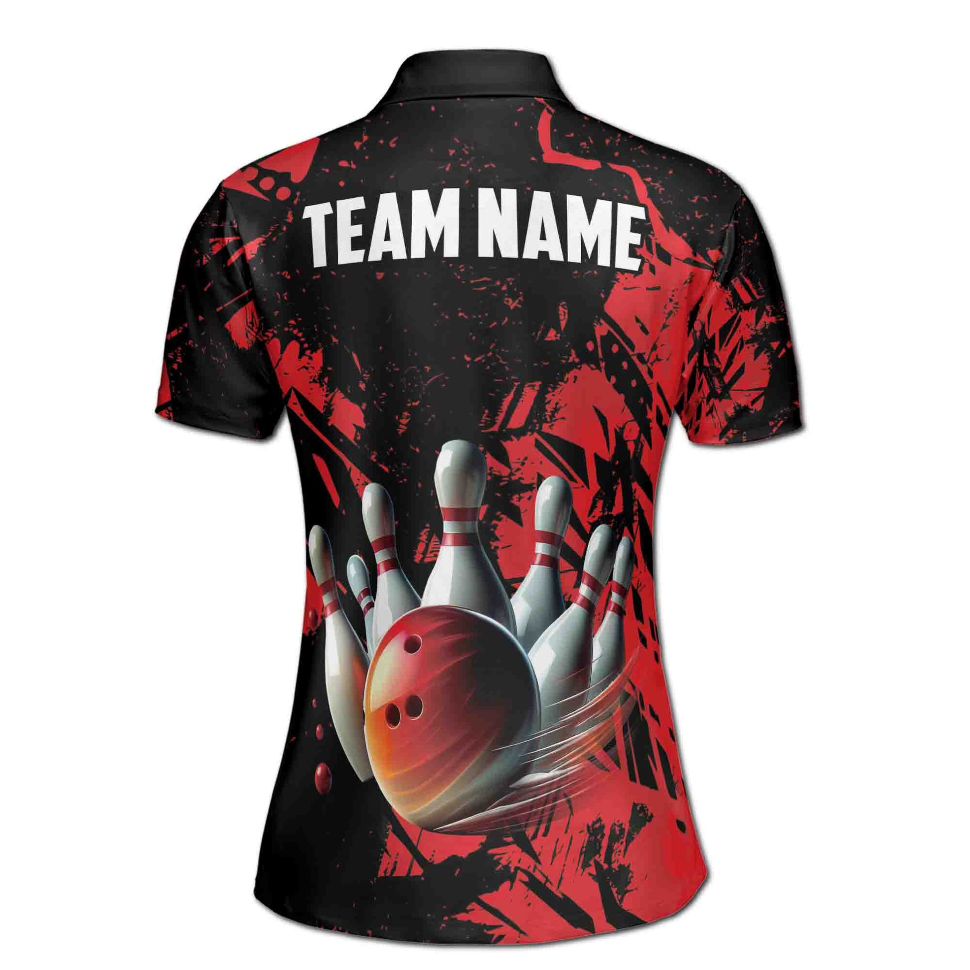 Personalized Red Bowling Team Dark Women's Polo Shirt S-5XL