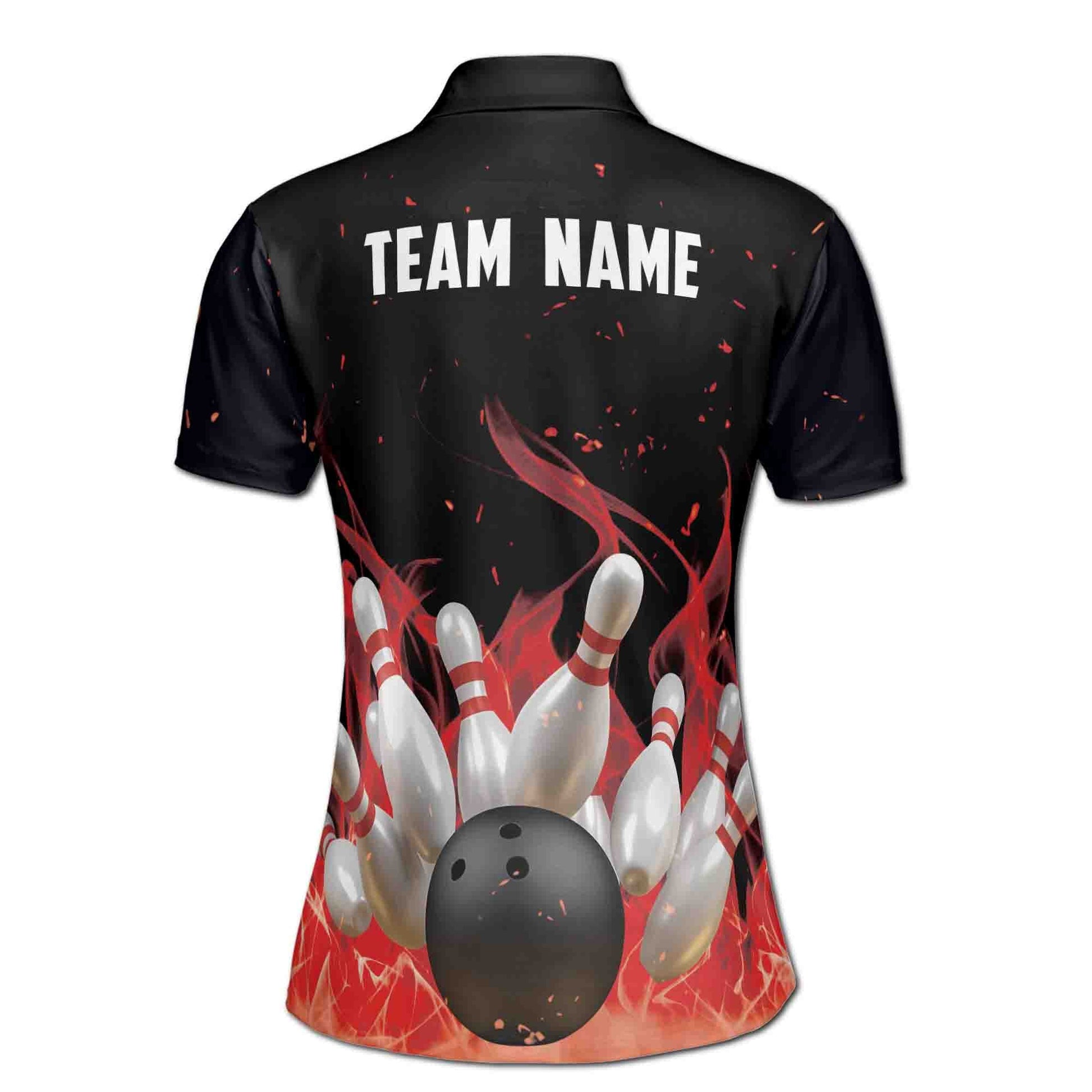 Personalized Red Flame Bowling Player Lover Women's Polo Shirt S-5XL