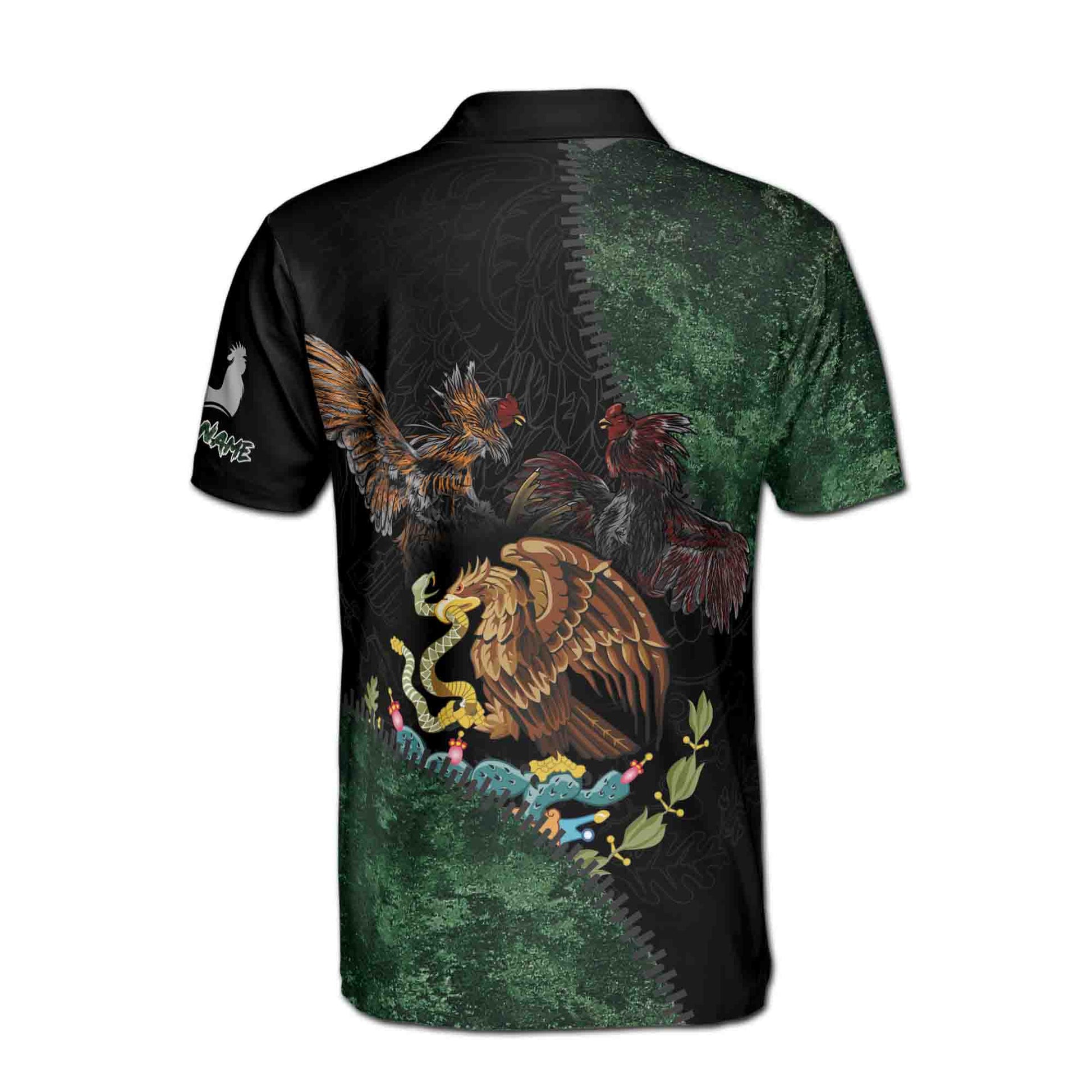 Rooster Mexican Eagle Mexico Coat of Arms National Pride Men's Polo Shirt S-5XL