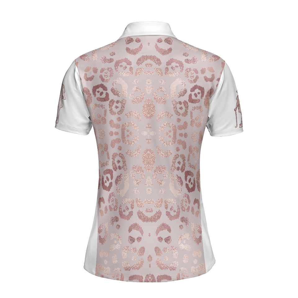 Rose Gold Leopard Print Golf Short Sleeve Women's Polo Shirts S-5XL