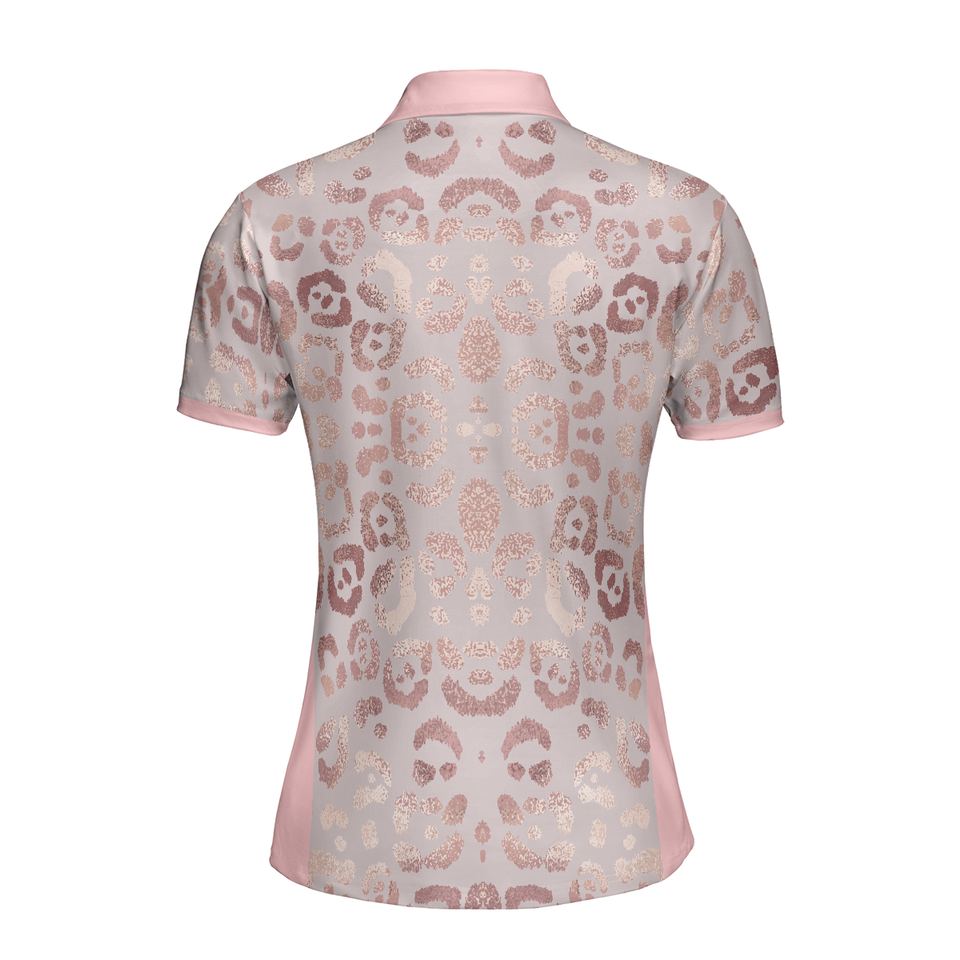 Rose Gold Leopard Print V2 Golf Short Sleeve Women's Polo Shirts S-5XL