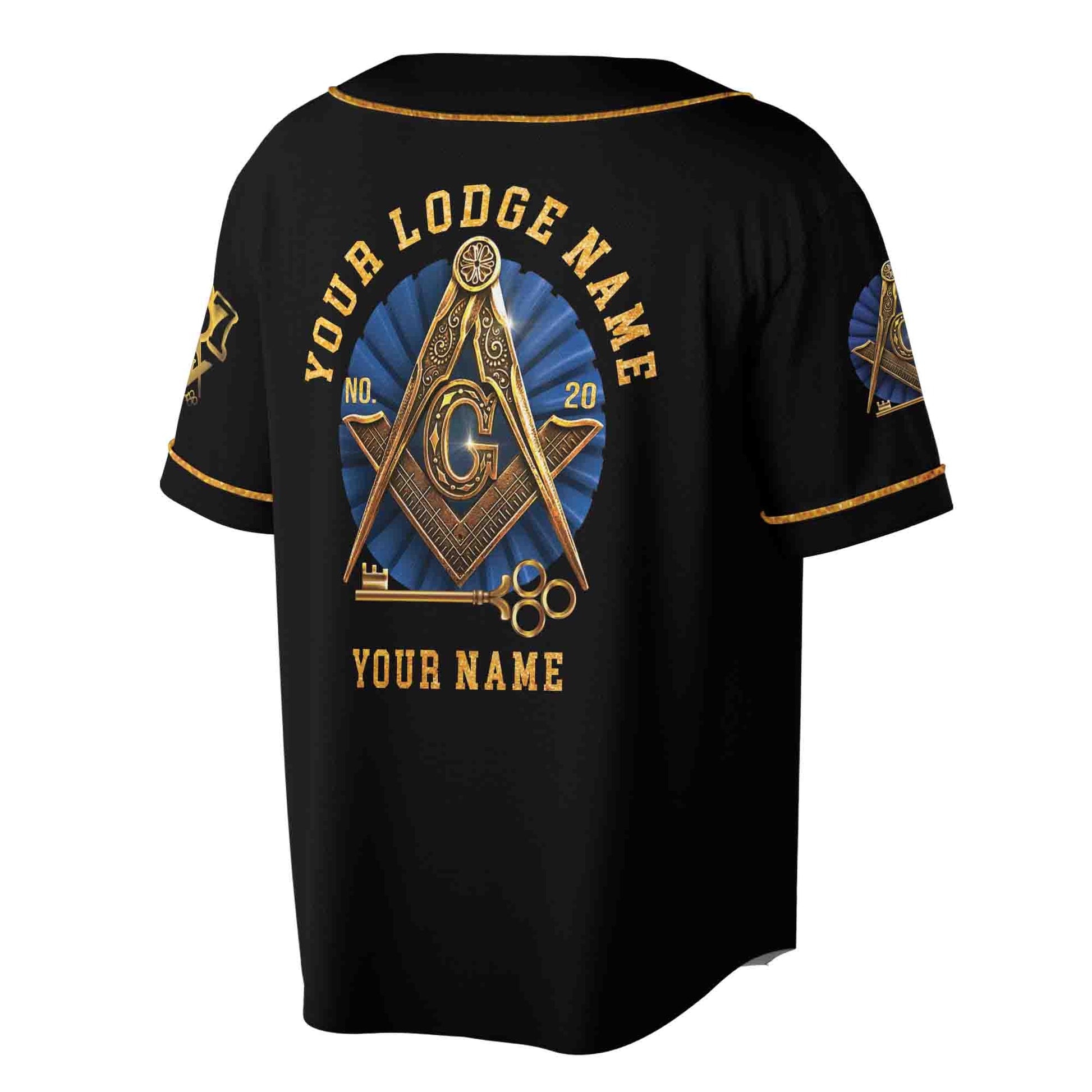 Square & Compass with Key Custom Lodge Name Number 3D Baseball Jersey Size S-5XL