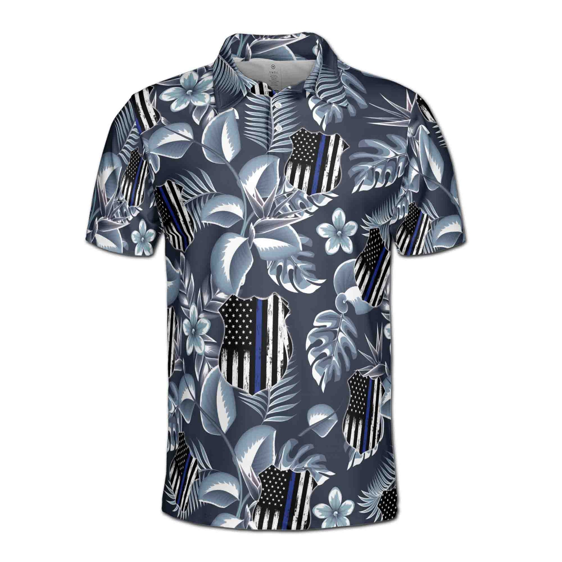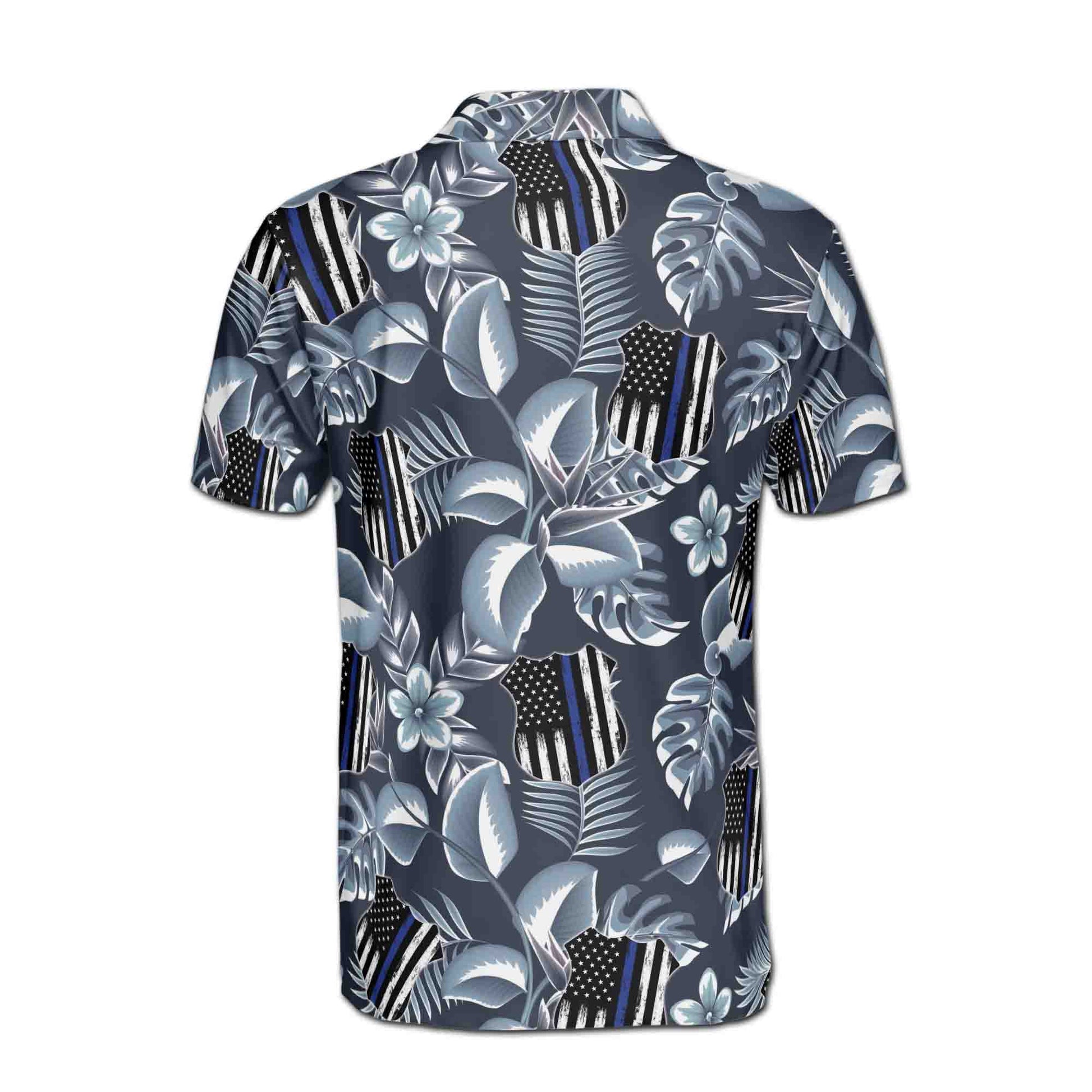 Thin Blue Line Tropical Pattern 4th of July Independence Day Men's Polo Shirt S-5XL