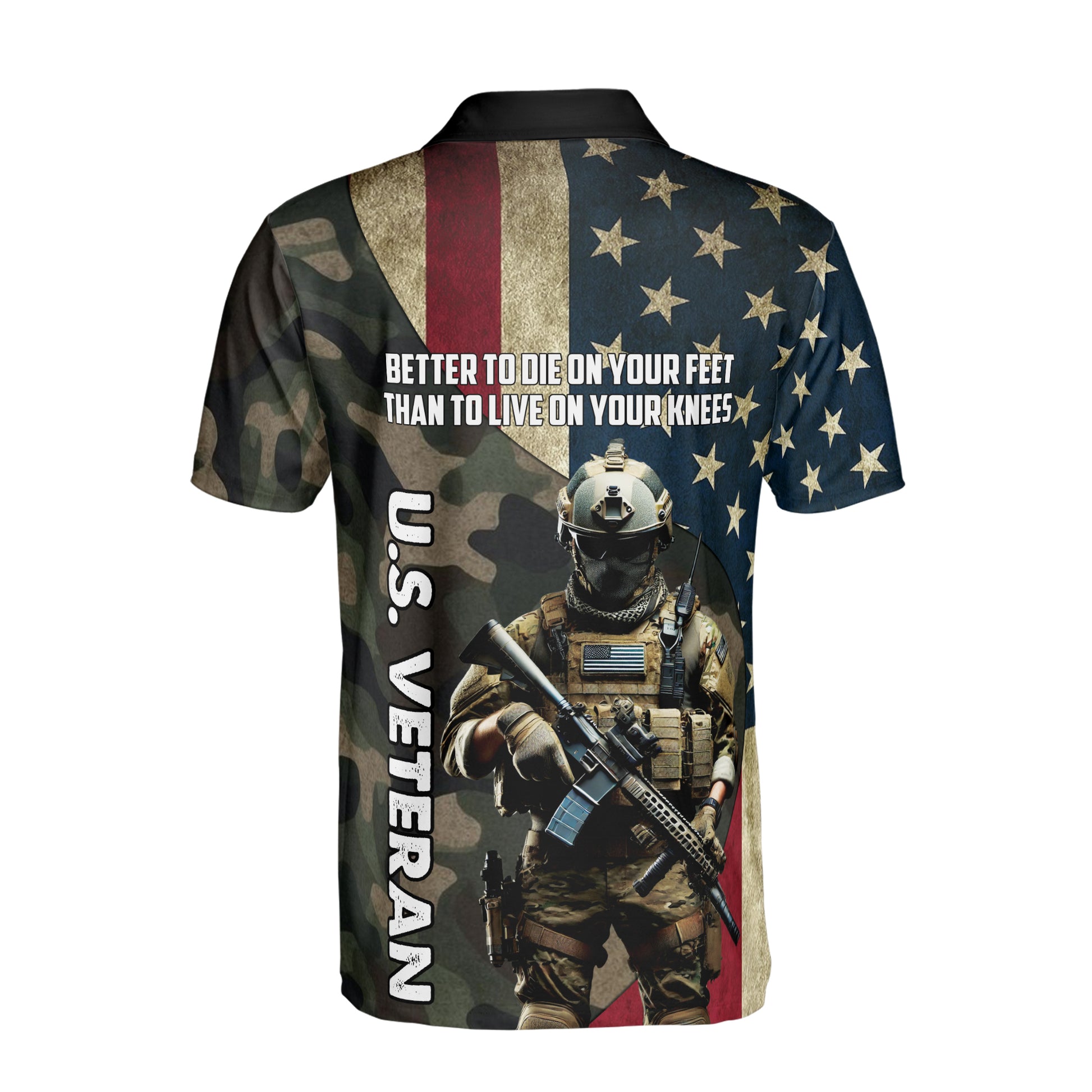 Custom Name U.S Veteran America Flag Camo Pattern Men's Polo Shirt S-5XL